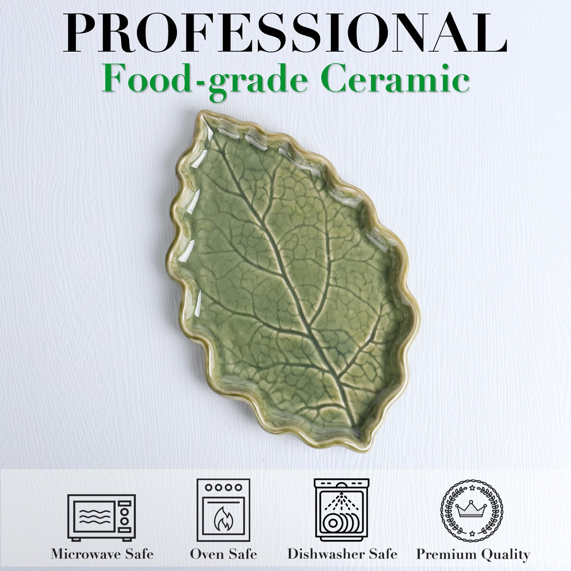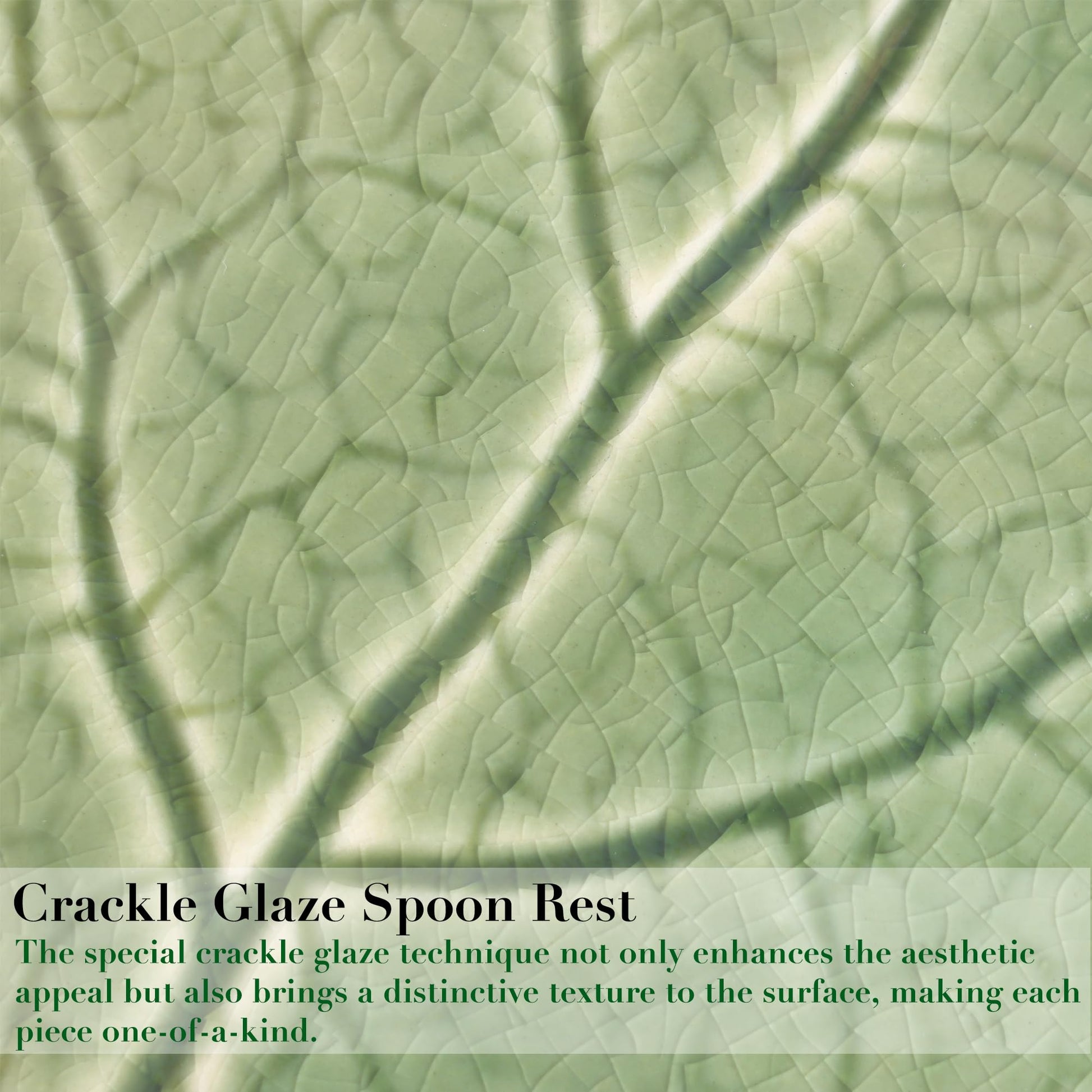 Ceramic Spoon Rest for Stove Top - Cute Green Leaf Shaped Spoon Rest/Spoon Holder for Kitchen Countertop - Cooking Kitchen Spoon Rest Utensil Rest Spatula Rest (Green)