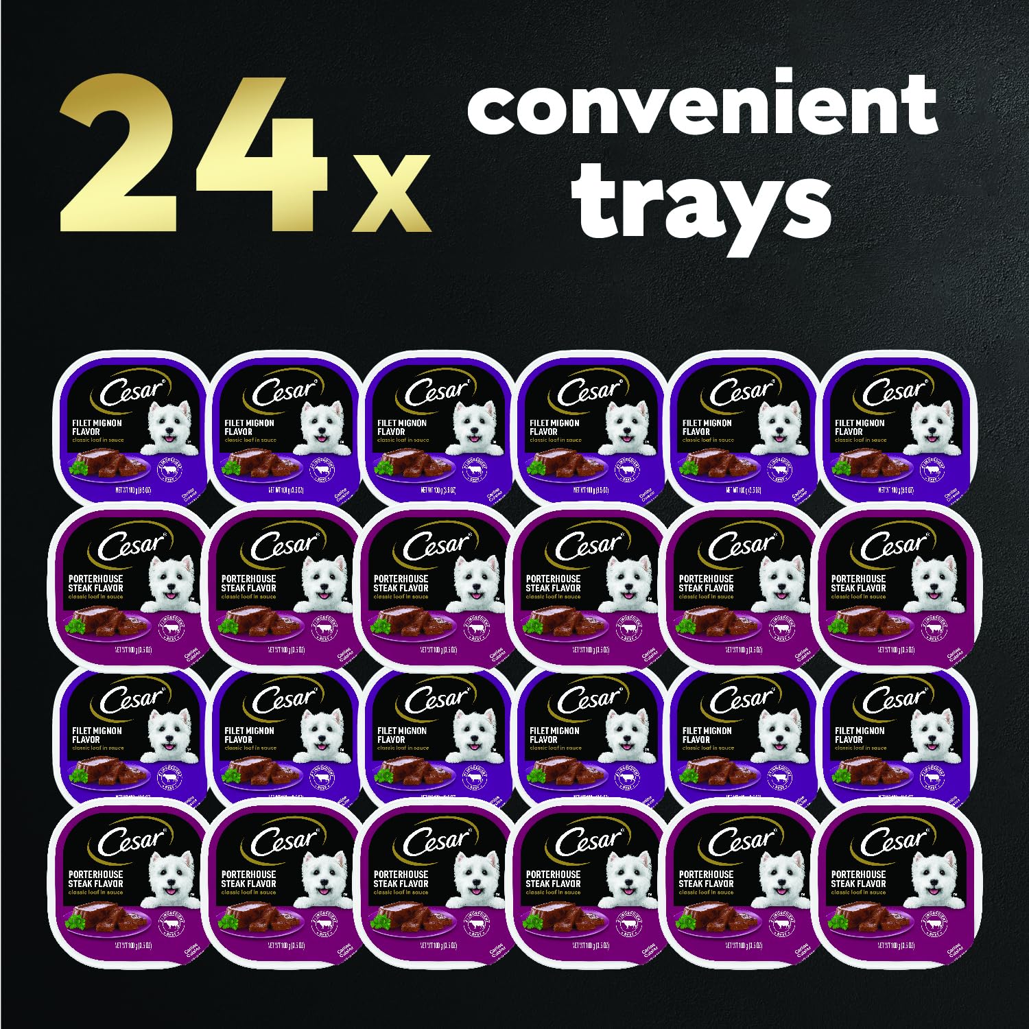 Cesar Wet Dog Food Classic Loaf in Sauce Filet Mignon and Porterhouse Steak Flavors Variety Pack, 3.5 oz. Easy Peel Trays (12 Count, Pack of 2)