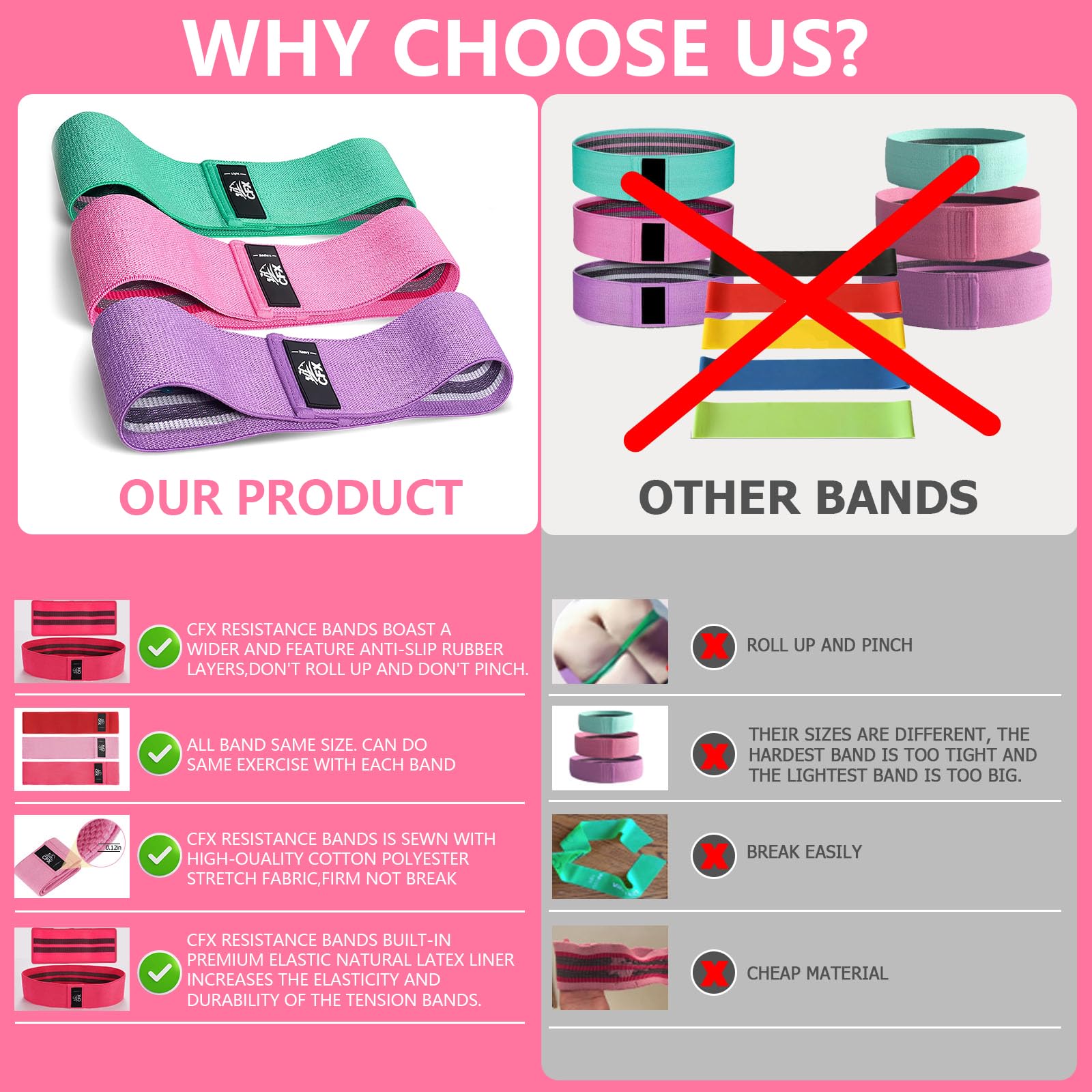 • Resistance Bands Lightweight Portable:CFX fabric resistance bands comes with a storage bag.The fitness bands occupies a small space and it can be easily carried with you.No matter where you are traveling, at home, gym, etc.You can also take resistance band with you on the way in the office, vacation, etc., or squat down anytime while watching TV at home.Also is a great Gift for You and your friend.