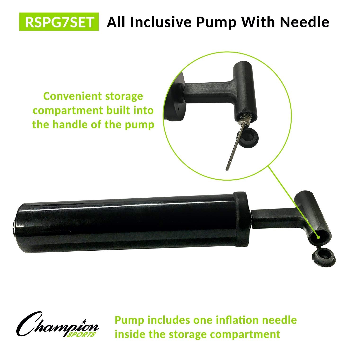Details: Designed to accommodate children's creativity and imaginations, the Champion Sports Super Soft RHINO Skin® Playground Ball Set is versatile enough for any game kids happen to invent on the playground. Featuring an inflatable RHINO Skin® these durable balls are lightweight and soft enough to prevent injuries when players get hit. The tough coating makes these balls suitable for indoor or outdoor use. You will always have the inflation needle handy as it is conveniently stored inside the handle of the pump.