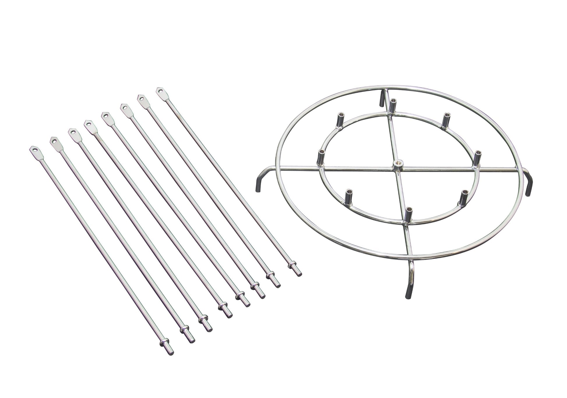 • Includes 4 boneless rib hooks, 2 leg racks, 6 easy-out rib hooks, 8 skewers, easy-load kabob holder and basket lifter