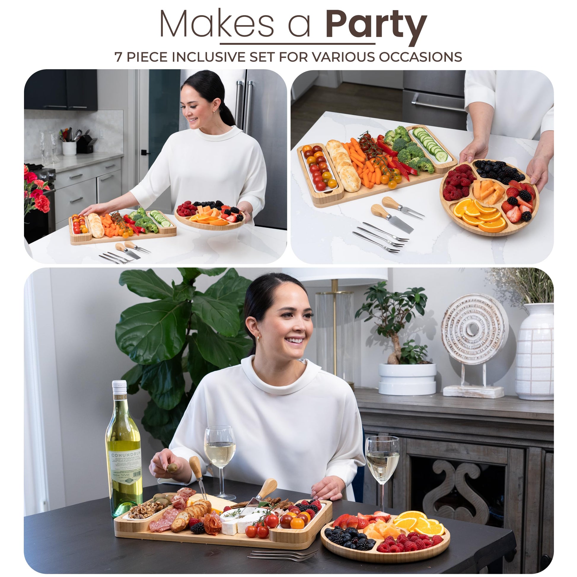 Charcuterie Board Gift Set - Bamboo Cheese Board & Serving Tray for Meat, Cheese, Crackers, Fruit - Large Wooden Charcuterie Boards for Parties - Wedding Gift, Housewarming, Gifts for Women & Couples