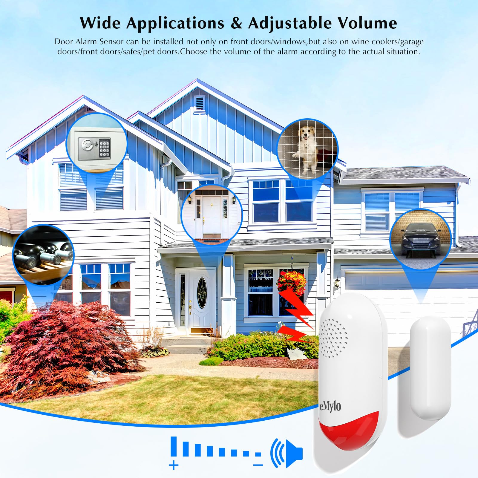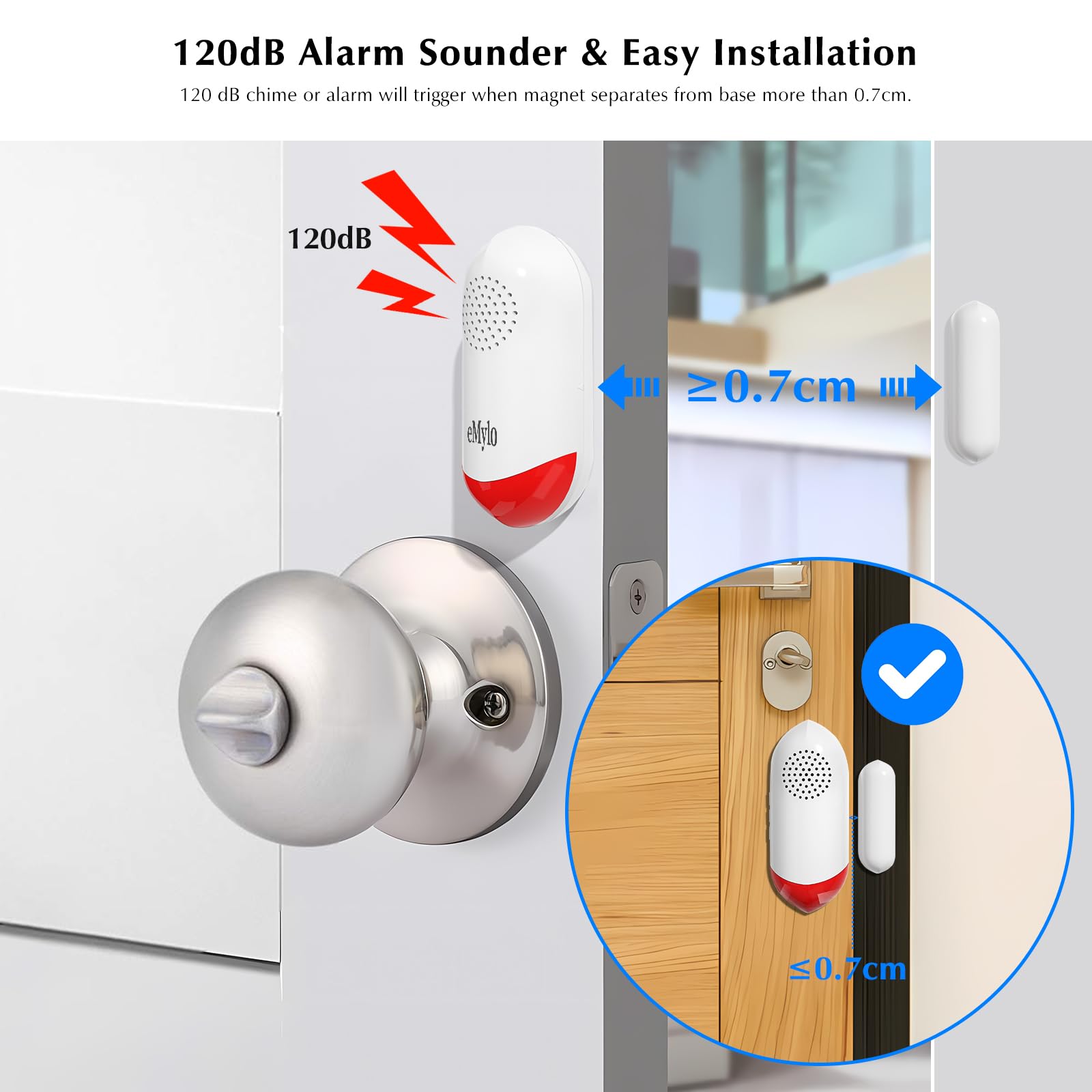 • 【Door Sensor that Alerts Your Phone】When door/window is opened , door alarm emits 120dB alarm to deter thieves and flashes red light to attract attention, then sensor will push instant alarm notification to your smartphone.