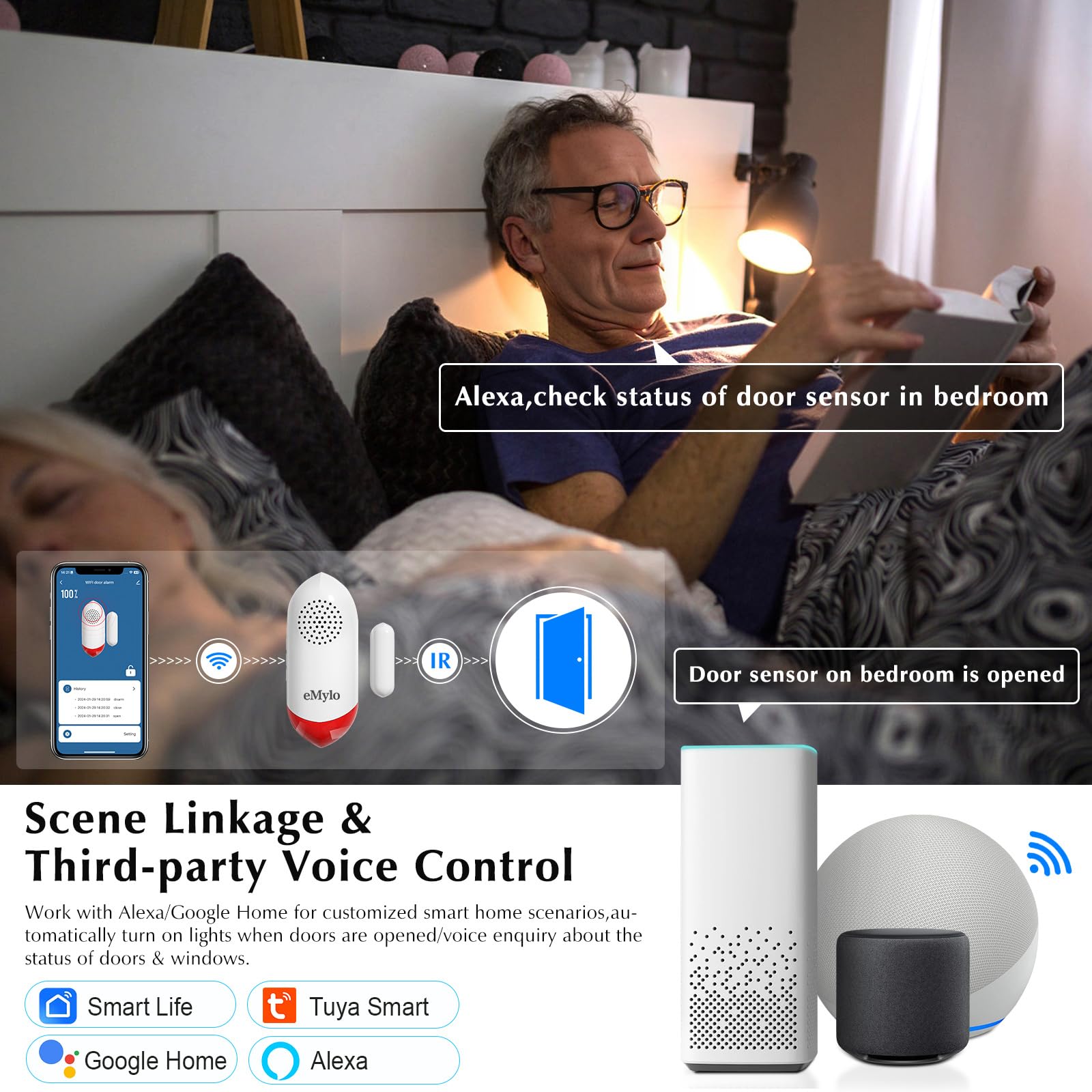 • 【Home Smart Linkage】 Smart door sensor is programmable with other Tuya Smart Life Devices. To turn on / off your smart home devices automatically by connecting the smart window door sensor with your other smart home devices. For example, your home will be lighted on automatically when you open the door as you get home from work.