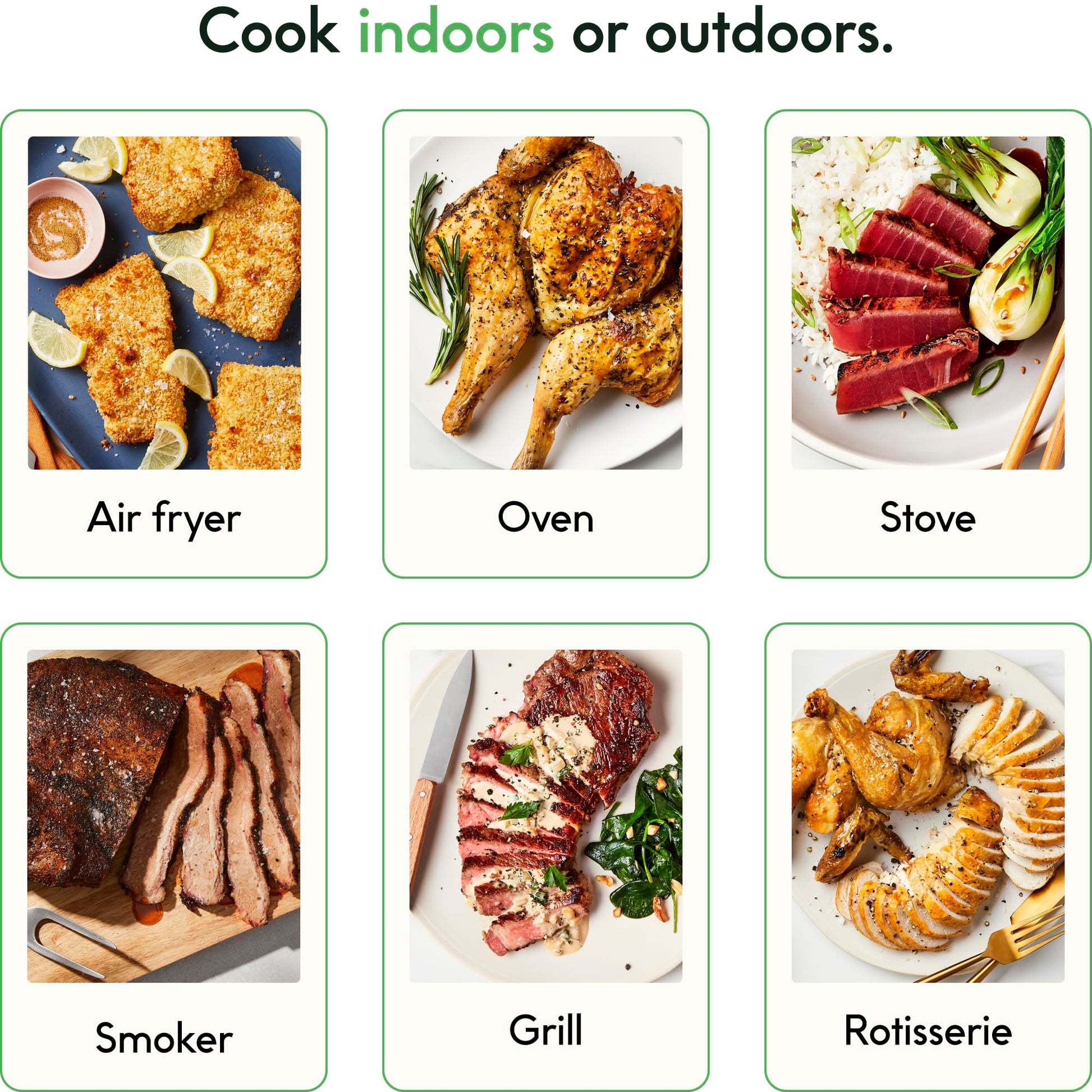 • PERFECTLY COOKED FOODS: This smart cooking thermometer takes away the guesswork with real-time internal temperature updates, flip reminders, rest indicators, estimated time left, and more.