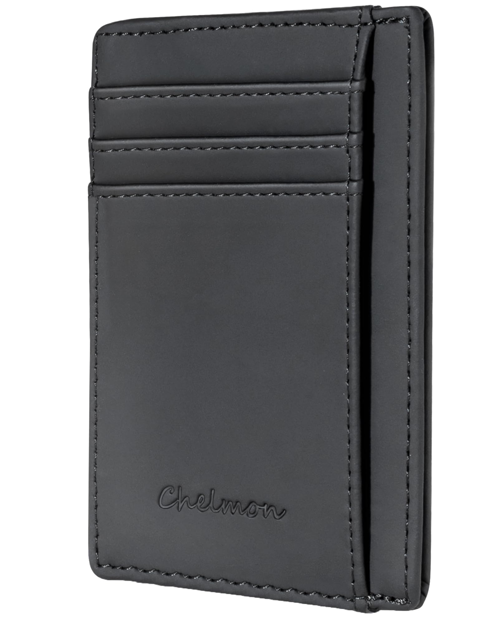 Chelmon Slim Wallet for Men, Minimalist Front Pocket RFID Blocking Credit Card Holder, Black Crazy Horse