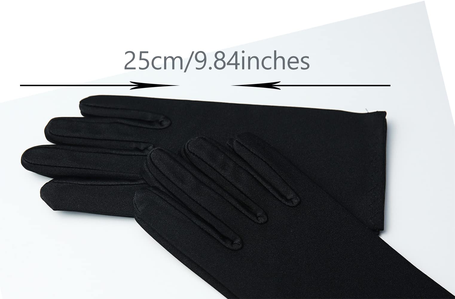 Chendvol Men's and Women's Wrist Length Stretchy Spandex Gloves Costume Banquet Wedding Party Short Gloves (Black)