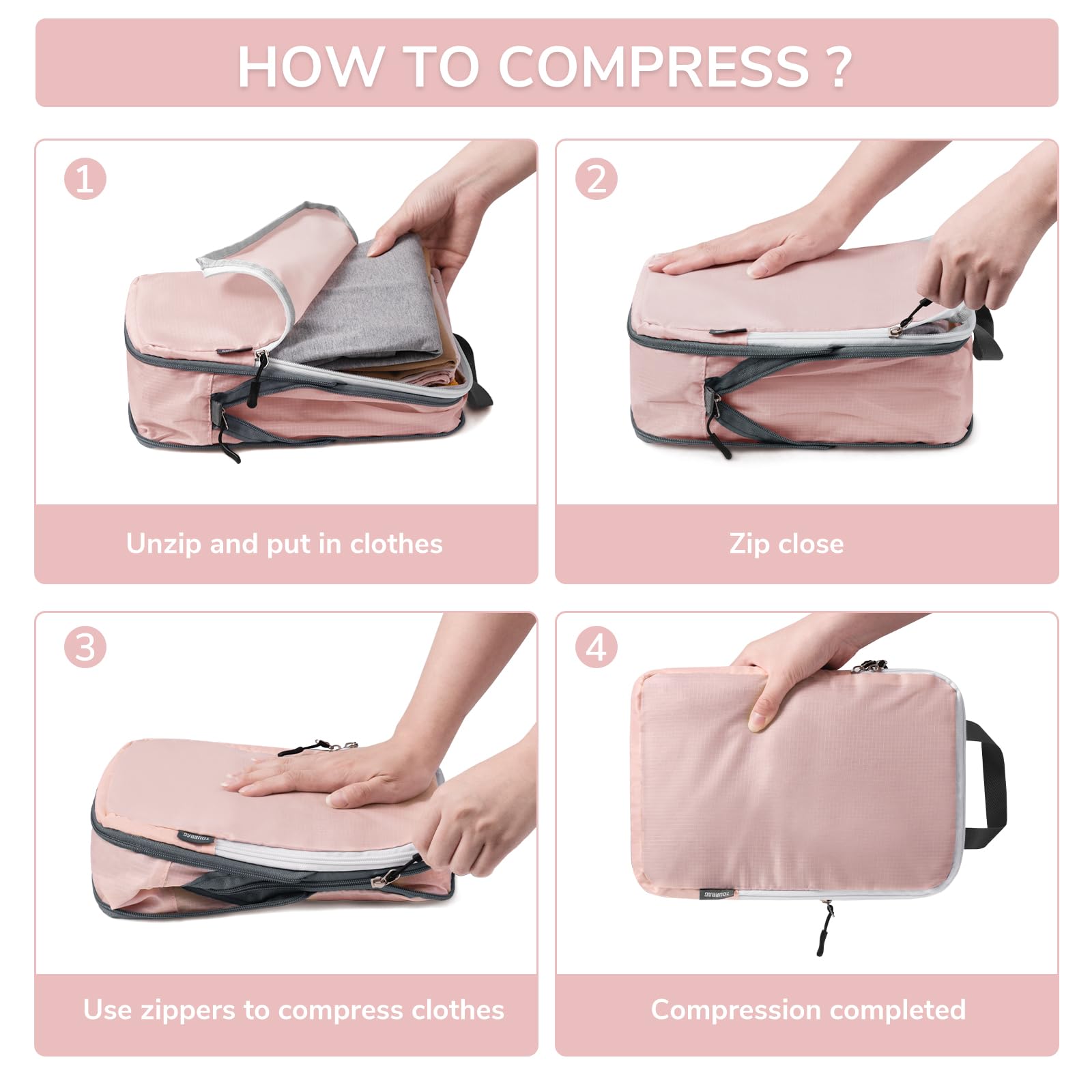 • Easy to Use: Just unzip, pack in your clothes, and zip up to compress. These packing cubes are perfect for travelers who want to efficiently organize their clothing, making packing and unpacking a breeze