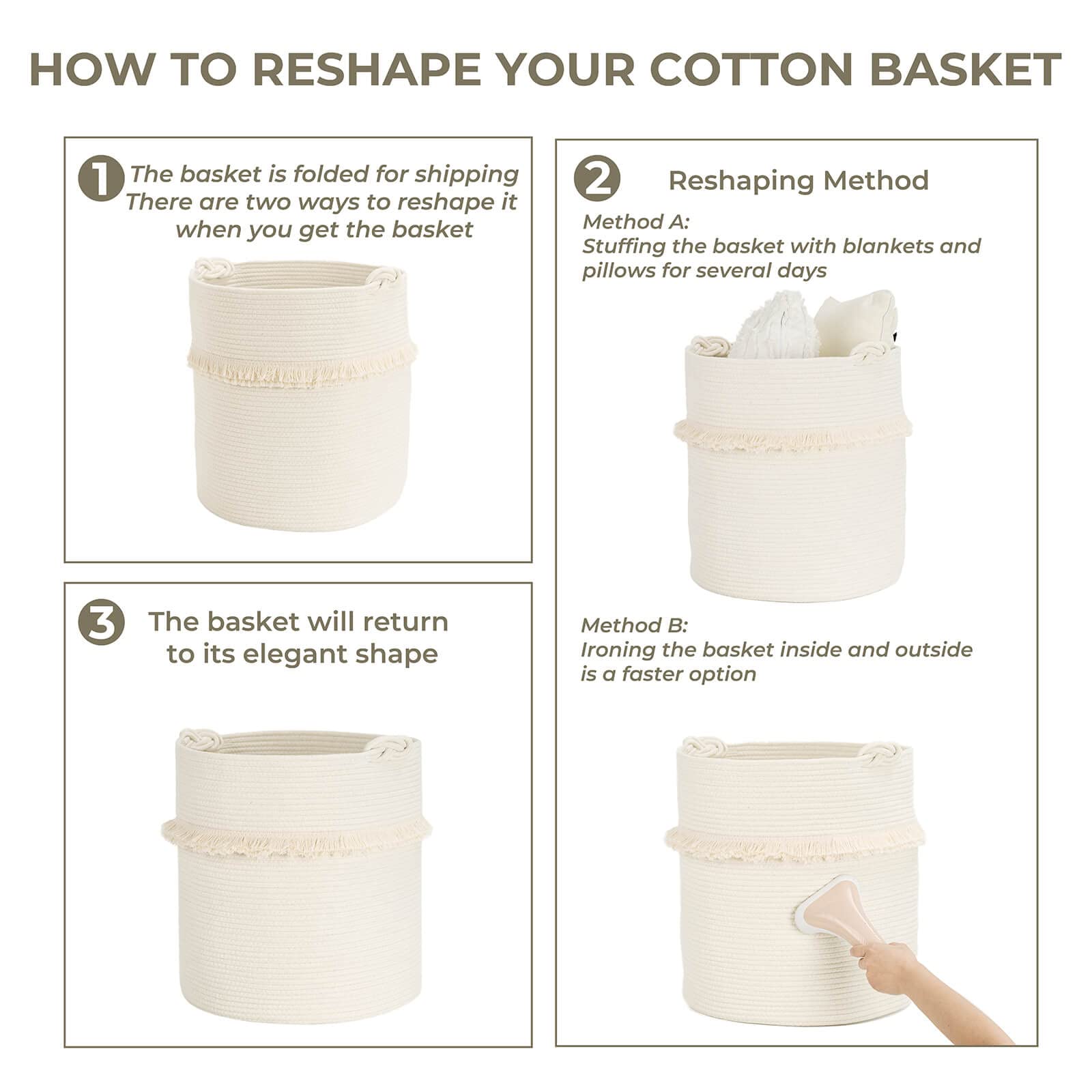 • COTTON ROPE MATERIAL: Our storage basket is made from strong cotton woven rope; cotton rope, has good resilience; this elegant, stylish white material is attractive