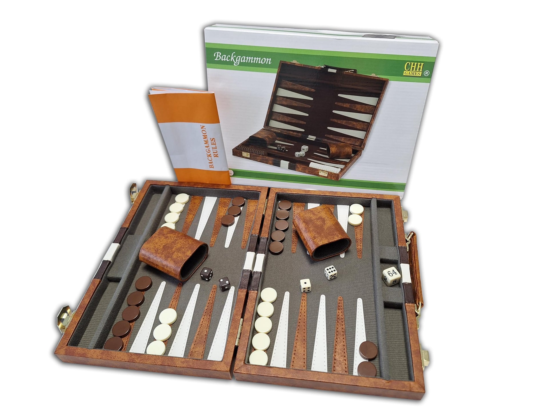 CHH Vinyl with Ripes Backagammon Set, Brown, 11"