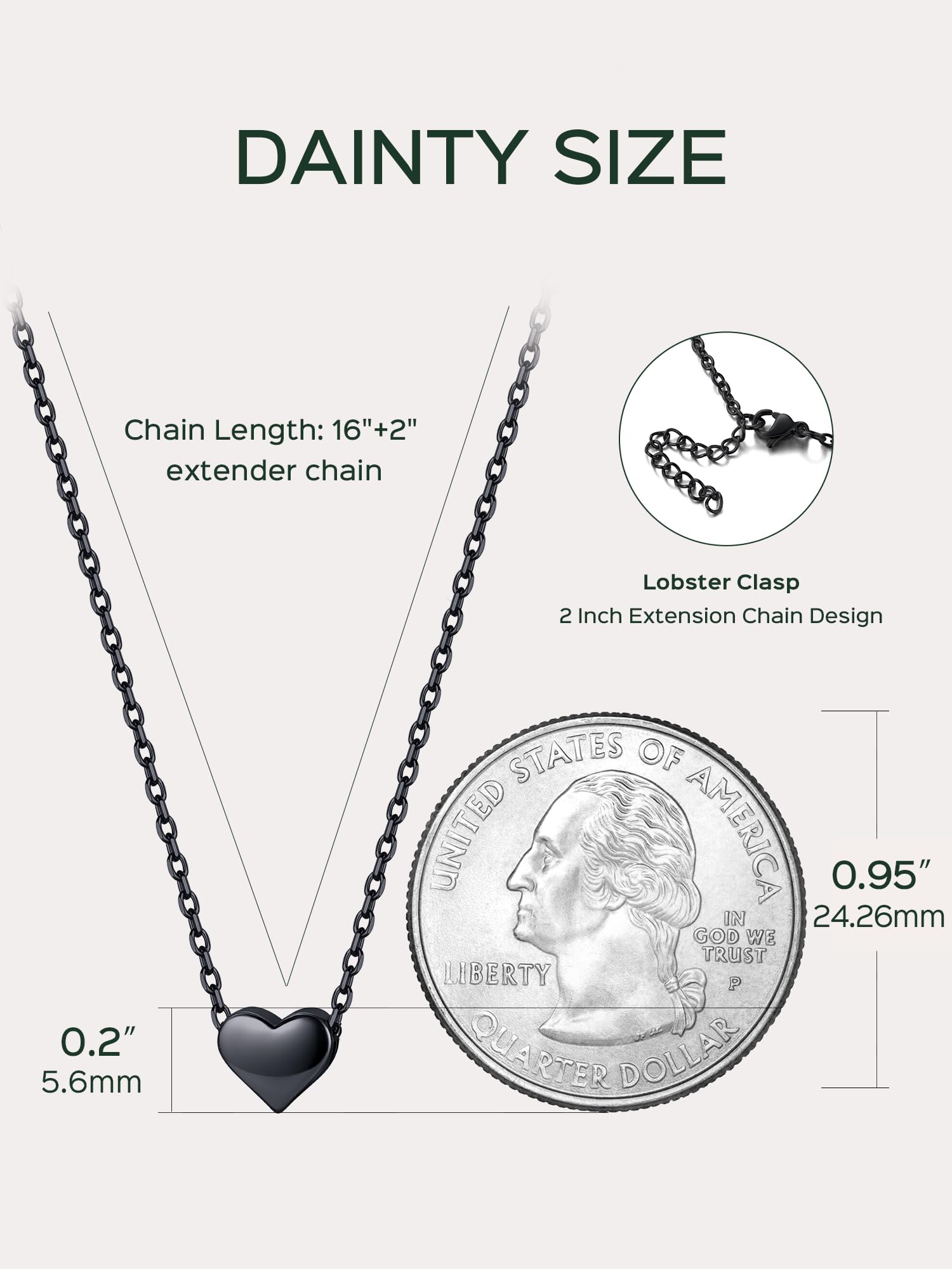 • Adjustable & Comfortable Fit: Pendant size is 0.2'' * 0.3''(5.6mm*7mm); Chain Size: 16inches +2inches extension/Resizable which make sure the black necklaces for women will fit perfectly on anyone. Clasp Type: Lobster-Claw-Clasps, easy to put on; Dainty heart necklace for women is 3 color options: Silver, gold plated or Rose gold plated