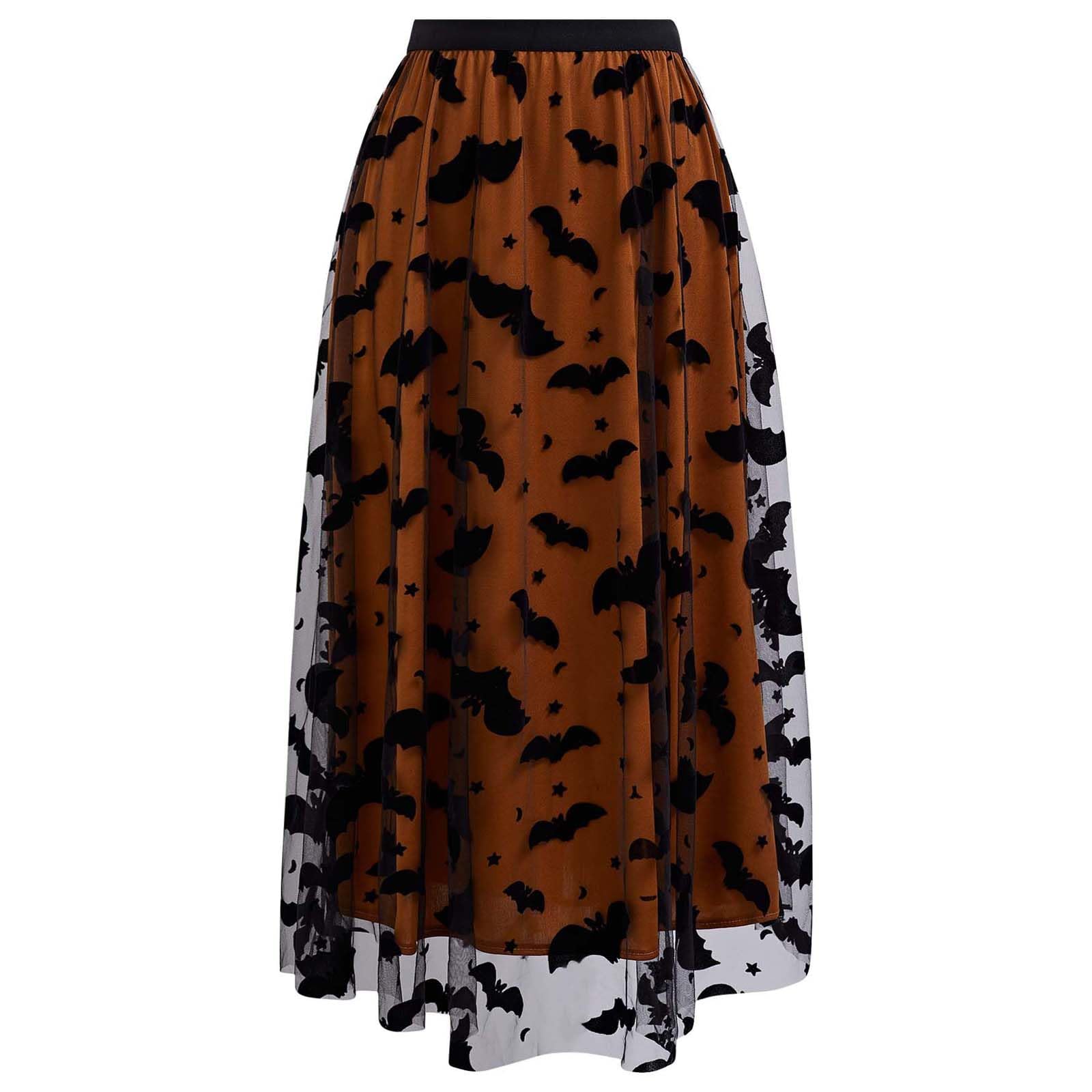 • [ Style Details ] This uniquely crafted skirt features delicate, velvet bats intricately sewn onto a layer of ethereal mesh tulle, creating a mesmerizing dance of shadows and light with every movement. Perfect for themed parties, Halloween soirees, or simply to make a bold fashion statement.