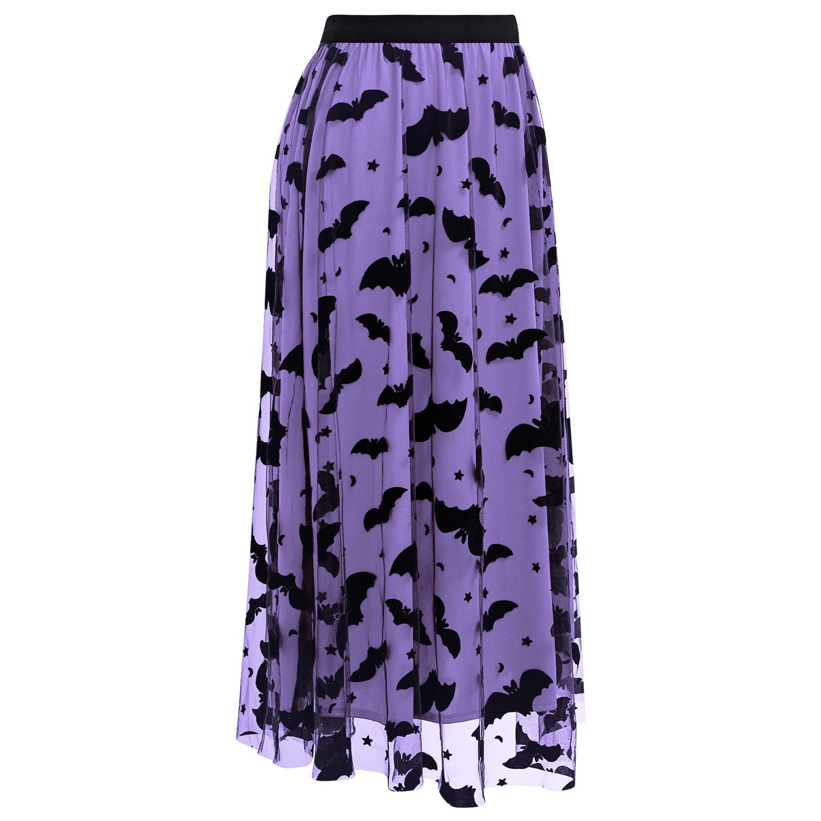 • [ Style Details ] This uniquely crafted skirt features delicate, velvet bats intricately sewn onto a layer of ethereal mesh tulle, creating a mesmerizing dance of shadows and light with every movement. Perfect for themed parties, Halloween soirees, or simply to make a bold fashion statement.