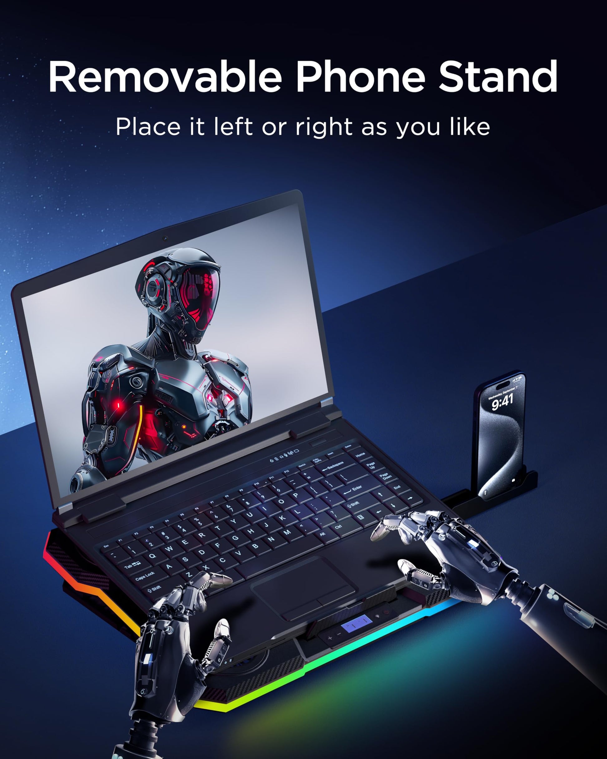 • LCD Display: The LCD of cooler pad readout shows your current fan speed.simple and intuitive.you can easily control the RGB lights and fan speed by touching the buttons.