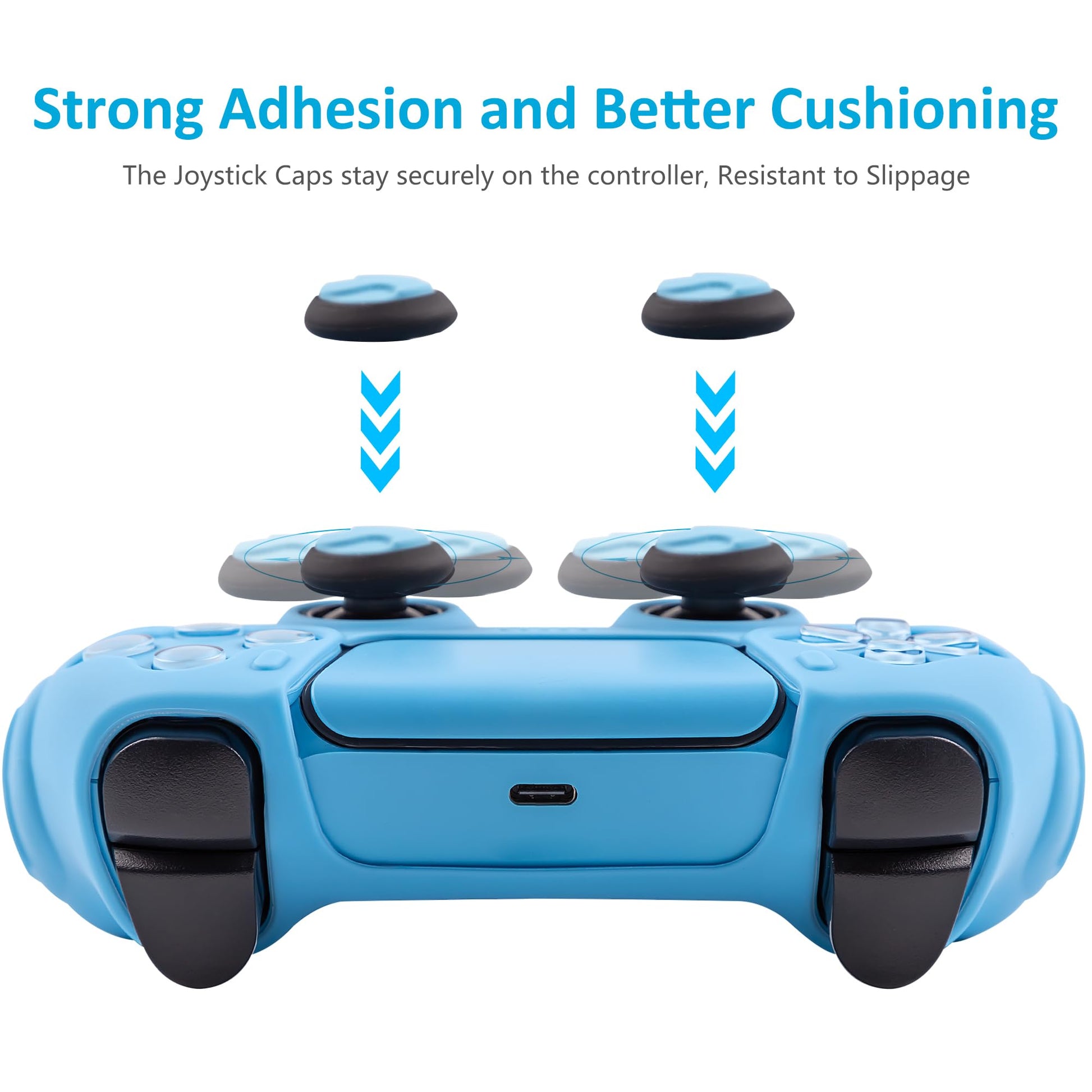 CHIN FAI Ergonomic Soft Grip Skin Compatible PS5 Controller Cover, Anti-Slip Silicone with 6 Thumb Grips Accessories Set for PlayStation 5 (Starlight Blue)