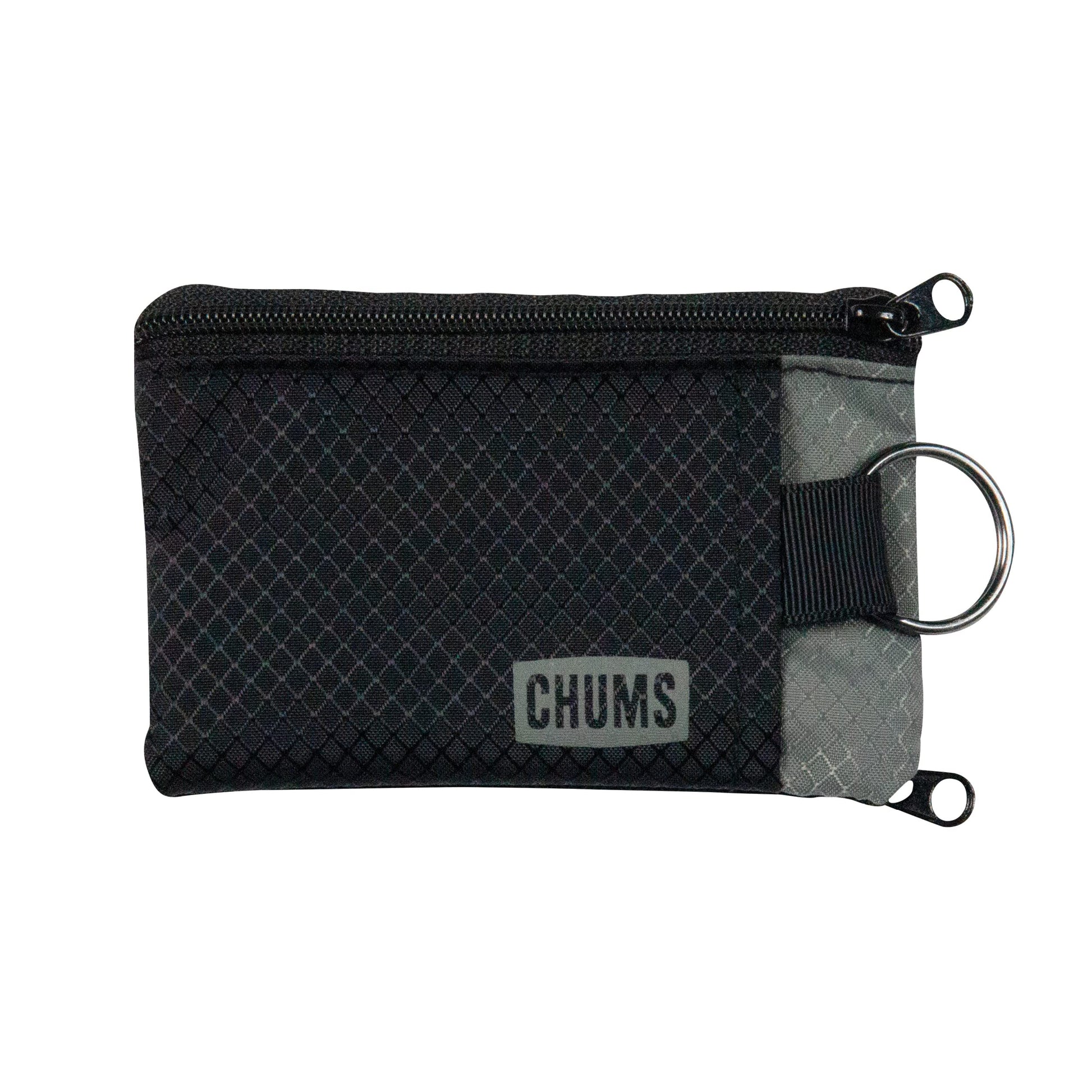 Chums Surfshorts Wallet - Lightweight Slim Wallet with RFID Blocking Card & Clear ID Window - Zippered, Water Resistant w/ Key Ring (Black/Gray)