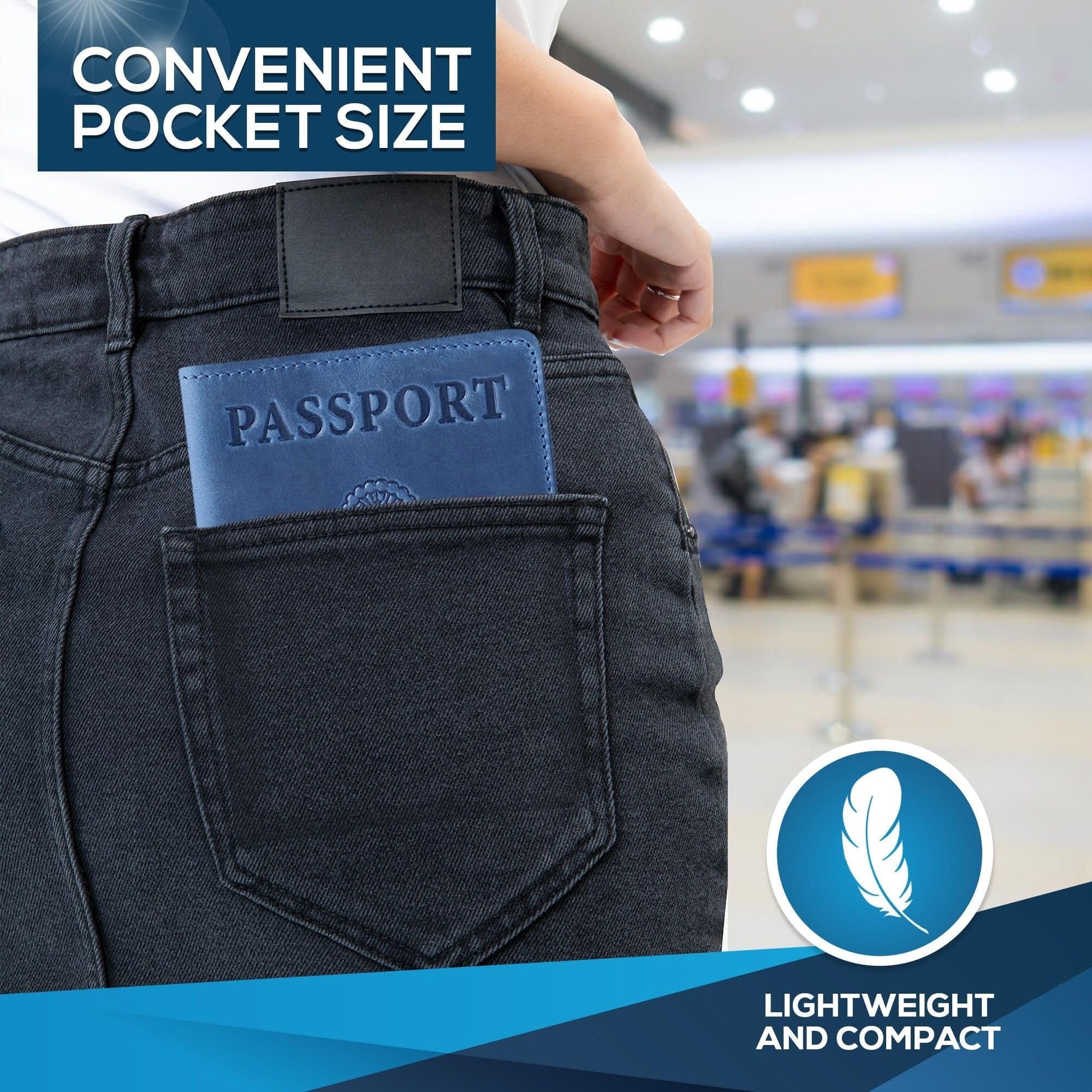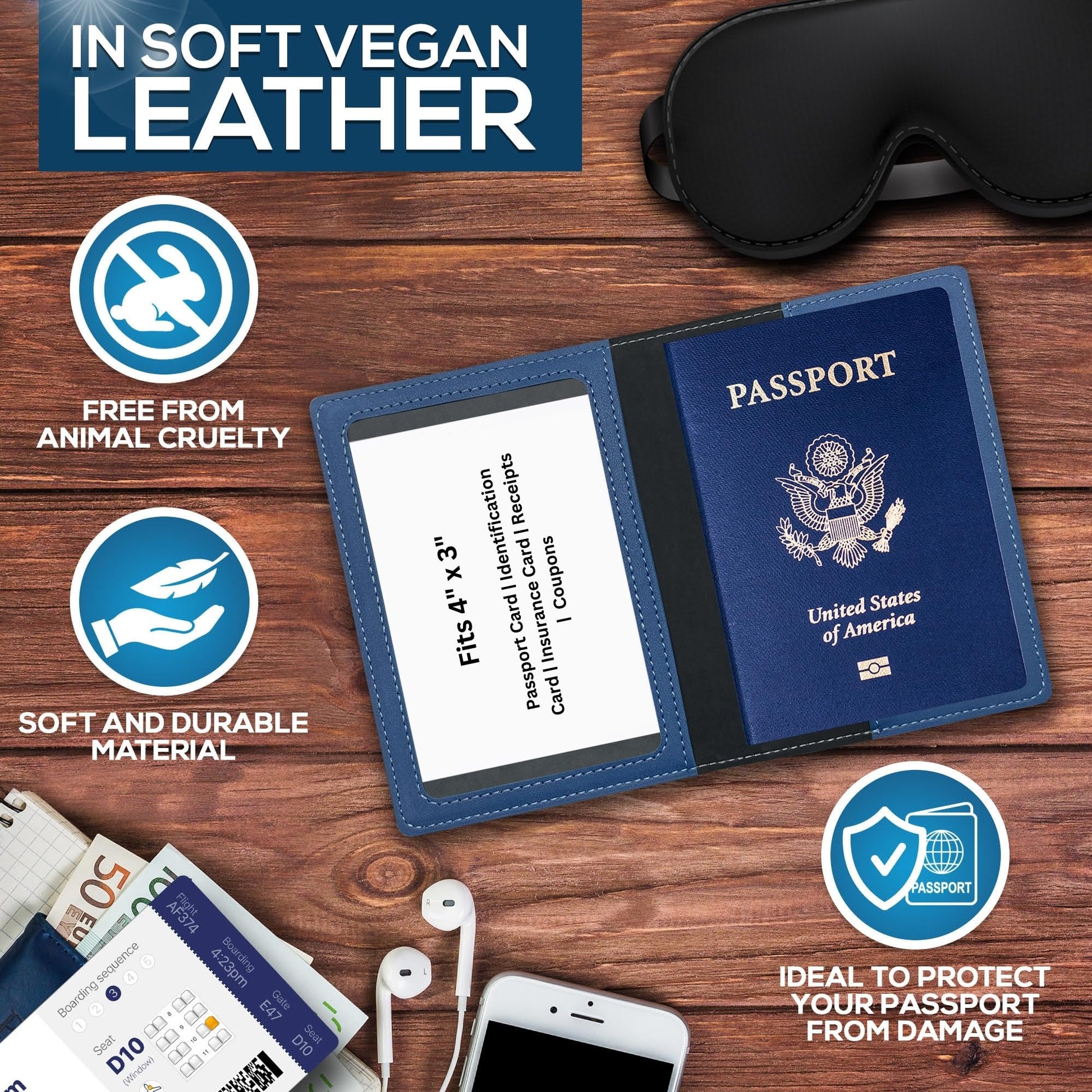 • THE PERFECT FIT: This card holder and passport cover has been custom made to perfectly fit both your passport and card; Say goodbye to card holders that don’t properly hold your card and passport wallets that bend your travel document; Our passport cover and card holder combo will safely protect your documents without folding, bending or crumpling them.