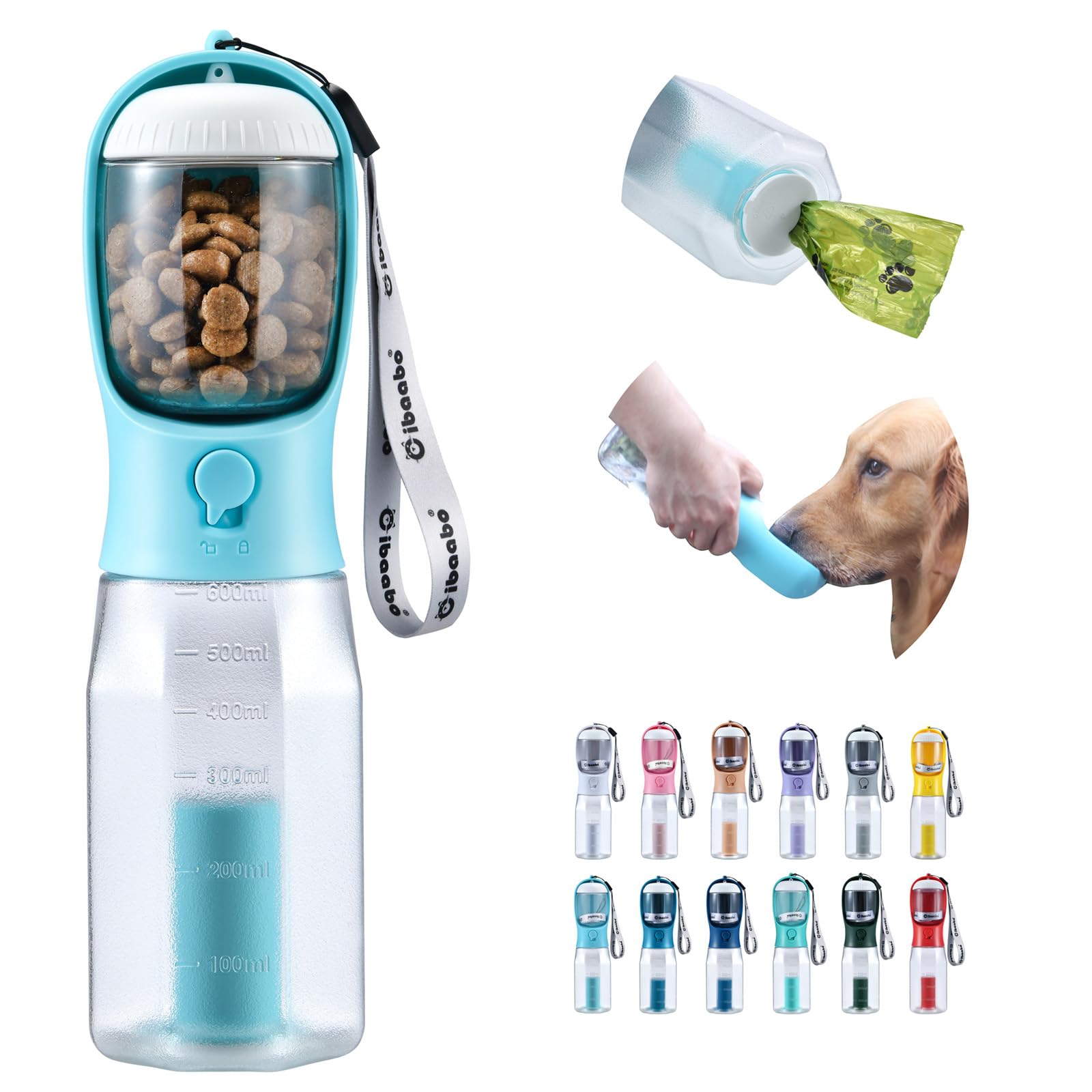 Cibaabo Dog Water Bottle with Food Container & Poop Bag Holder, Travel Water Bowl, Portable Pet Dispenser, Dog Stuff Accessories Items, Puppy Essentials Necessities for Yorkie Chihuahua Walking Hiking