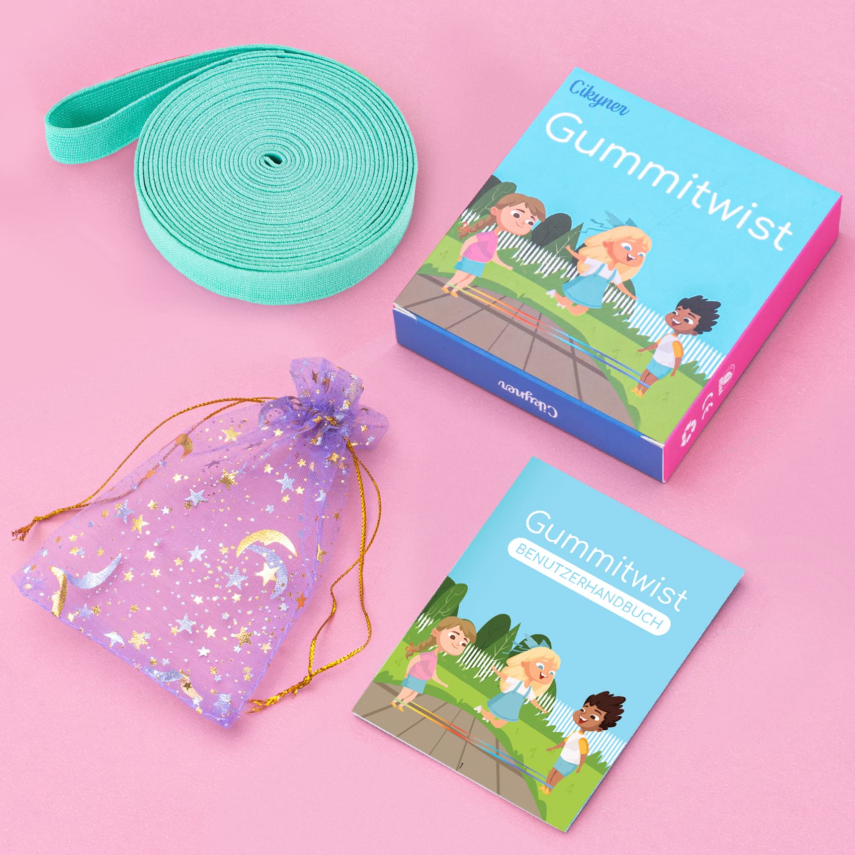 Cikyner Chinese Jump Rope, 4m Long 1.5cm Wide Elastic Chinese Ropes with Instructions French Skipping Rubber Band for Indoor and Outdoor Children Jumpsies Games, Ideal for Gifts for Girls and Boys