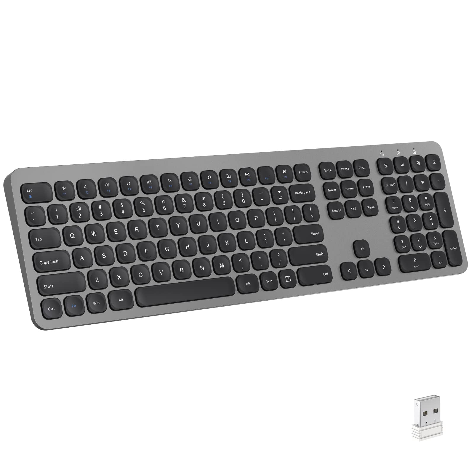 cimetech 2.4GHz Wireless Keyboard with Number Pad Full Size Design for Laptop Desktop PC Tablet, Windows iOS Android - Grey