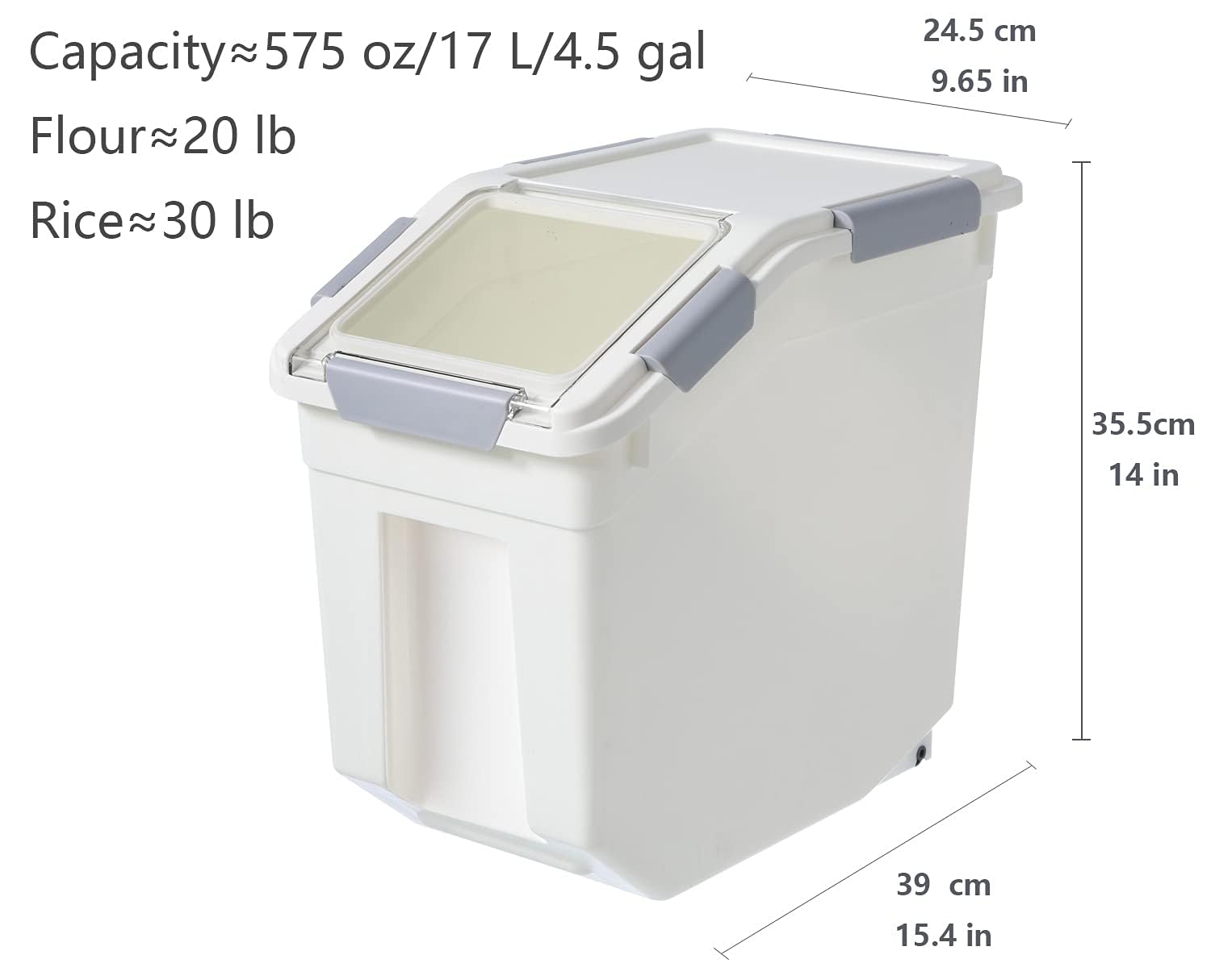 Large≈Flour 30 lbs,Rice 50 lbs: 17.3 * 11.8 * 15.5 in (L * W * H)