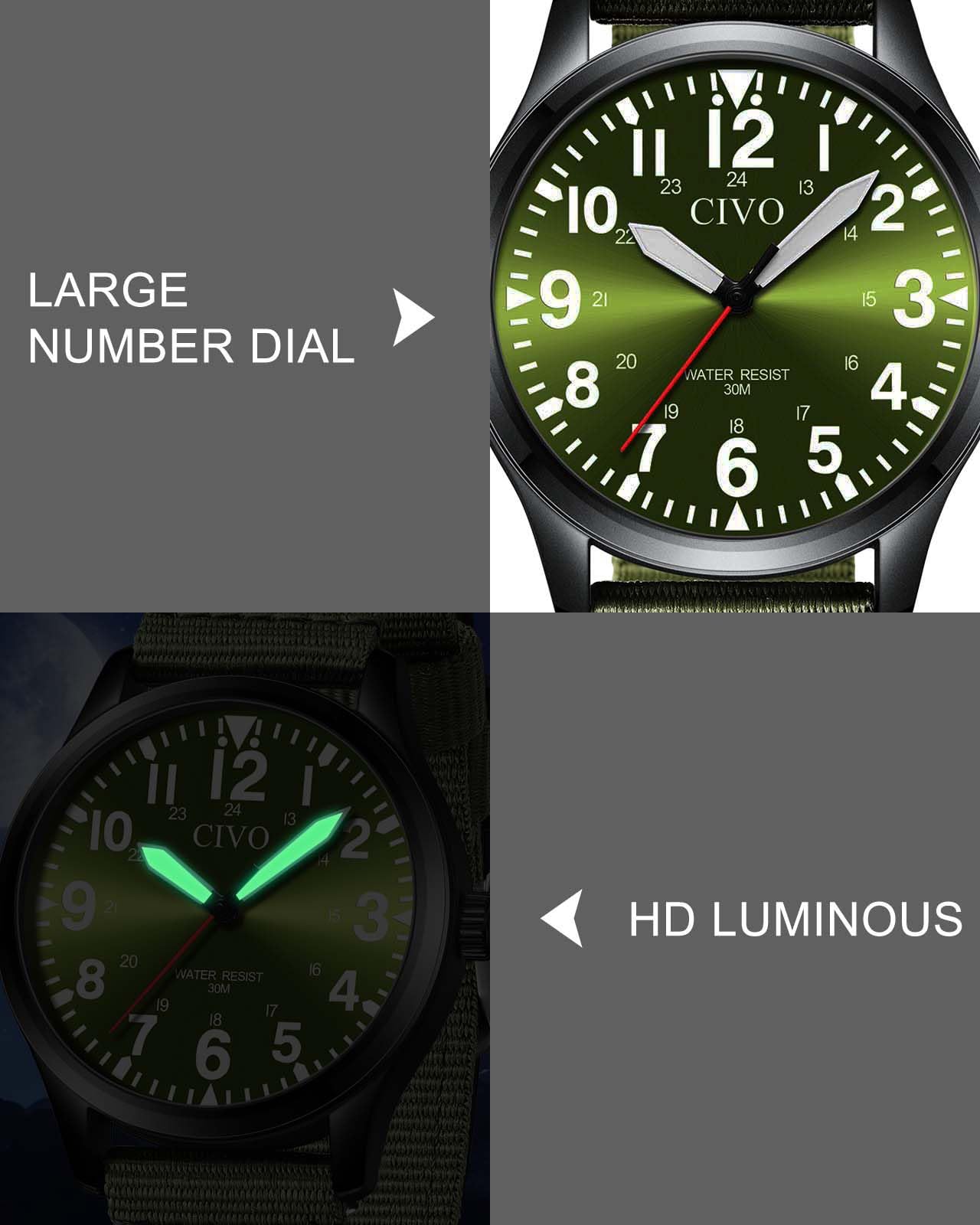 CIVO Military Watch for Men Waterproof: Analog Mens Watches Classic- Field Wrist Watches for Man