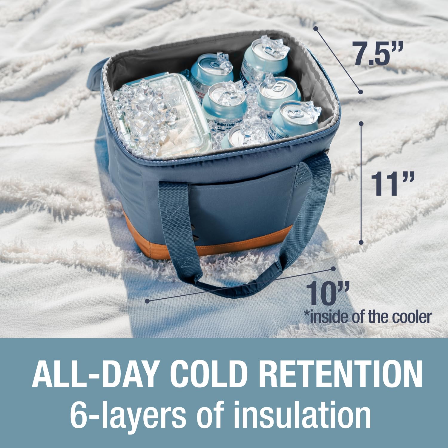 CleverMade Pacifica Collapsible Insulated Cooler Bag – 18 Can / 13 Qt Leakproof Soft Cooler for Beach, Travel, Car – Bottle Opener – Ocean