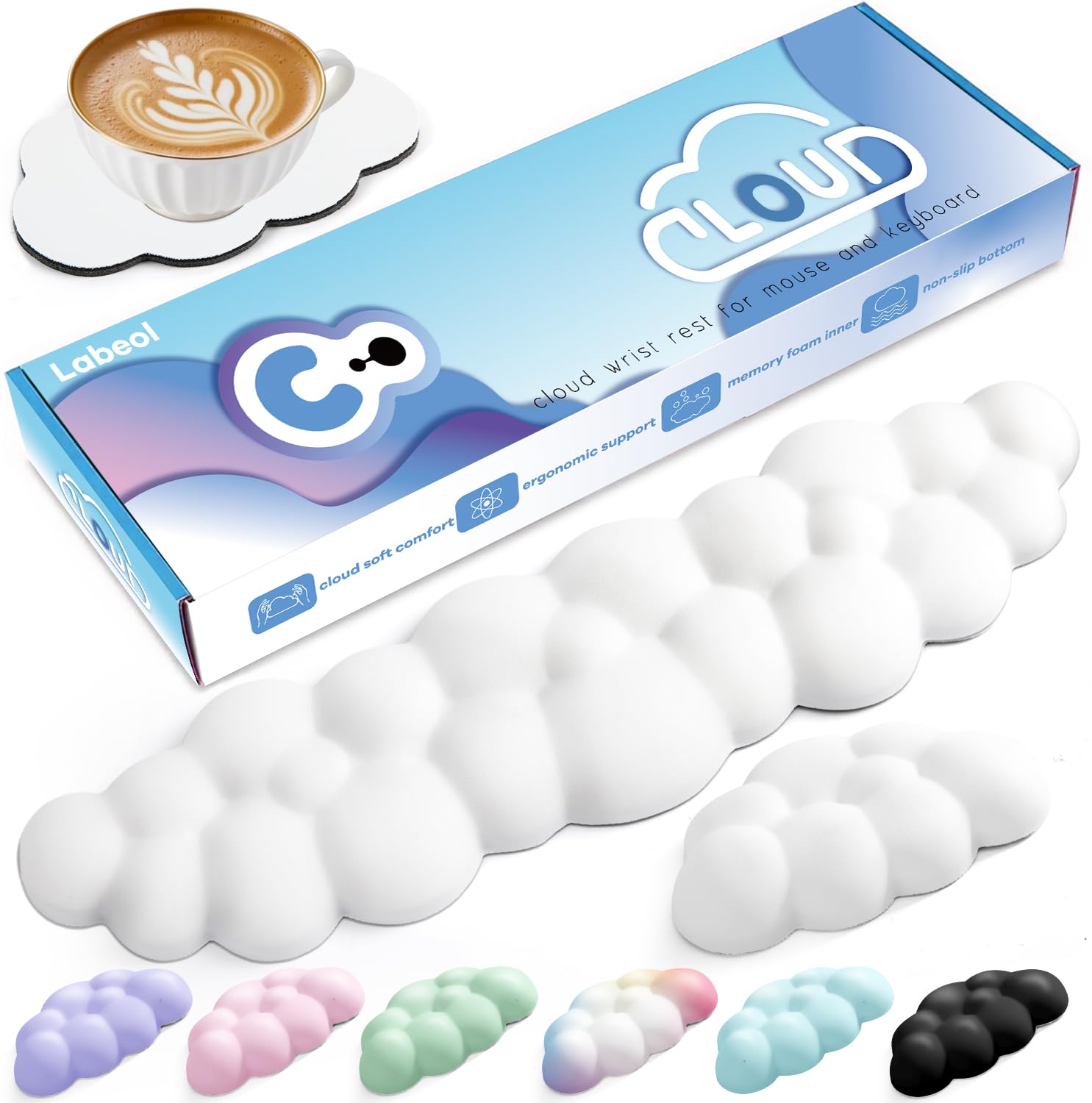 • 【Comfortable Cloud Wrist Rest Set】: It comes with cloud keyboard wrist, mouse wrist rest and cup pad. The comfortable cloud wrist rest for keyboard and mouse is the perfect size to fit all computers, gaming keyboards and workstations. Your wrist can stay in a straight line instead of at an angle to the keyboard for pain relief and provide maximum comfort and support for you