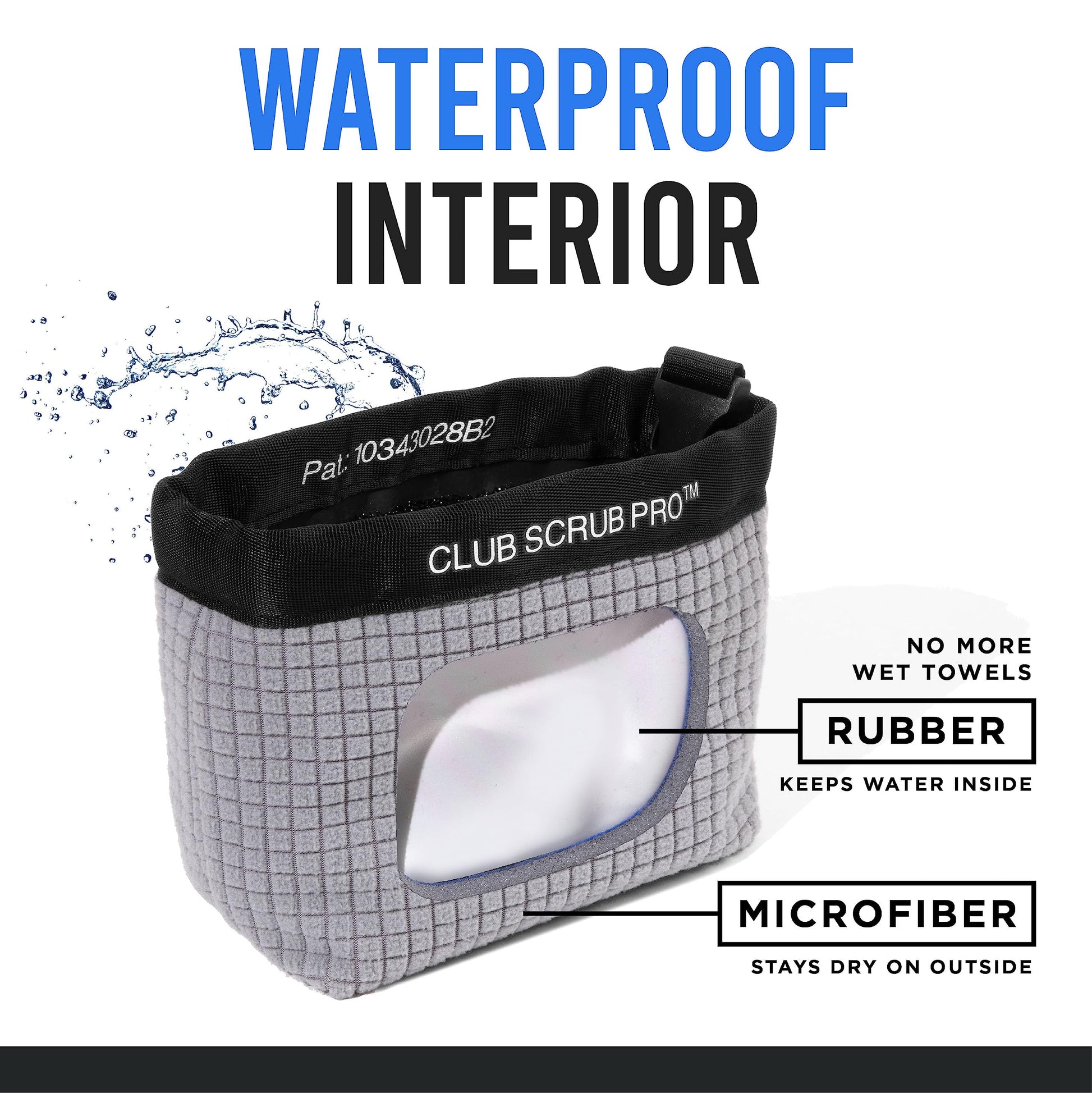 Club Scrub Golf Club and Golf Ball Cleaning Bag, Waterproof Clean Face Technology Liner, Perfectly Dry Microfiber Exterior, Detachable Clip, Machine Washable, Cleans Club Grooves, Gray Pro
