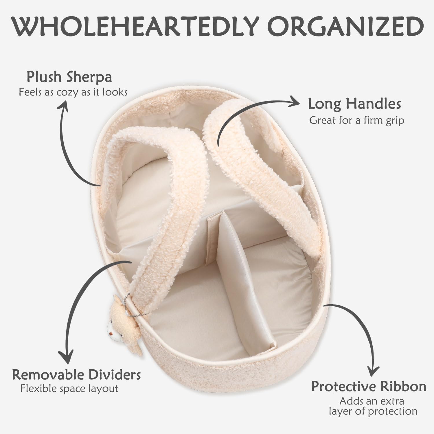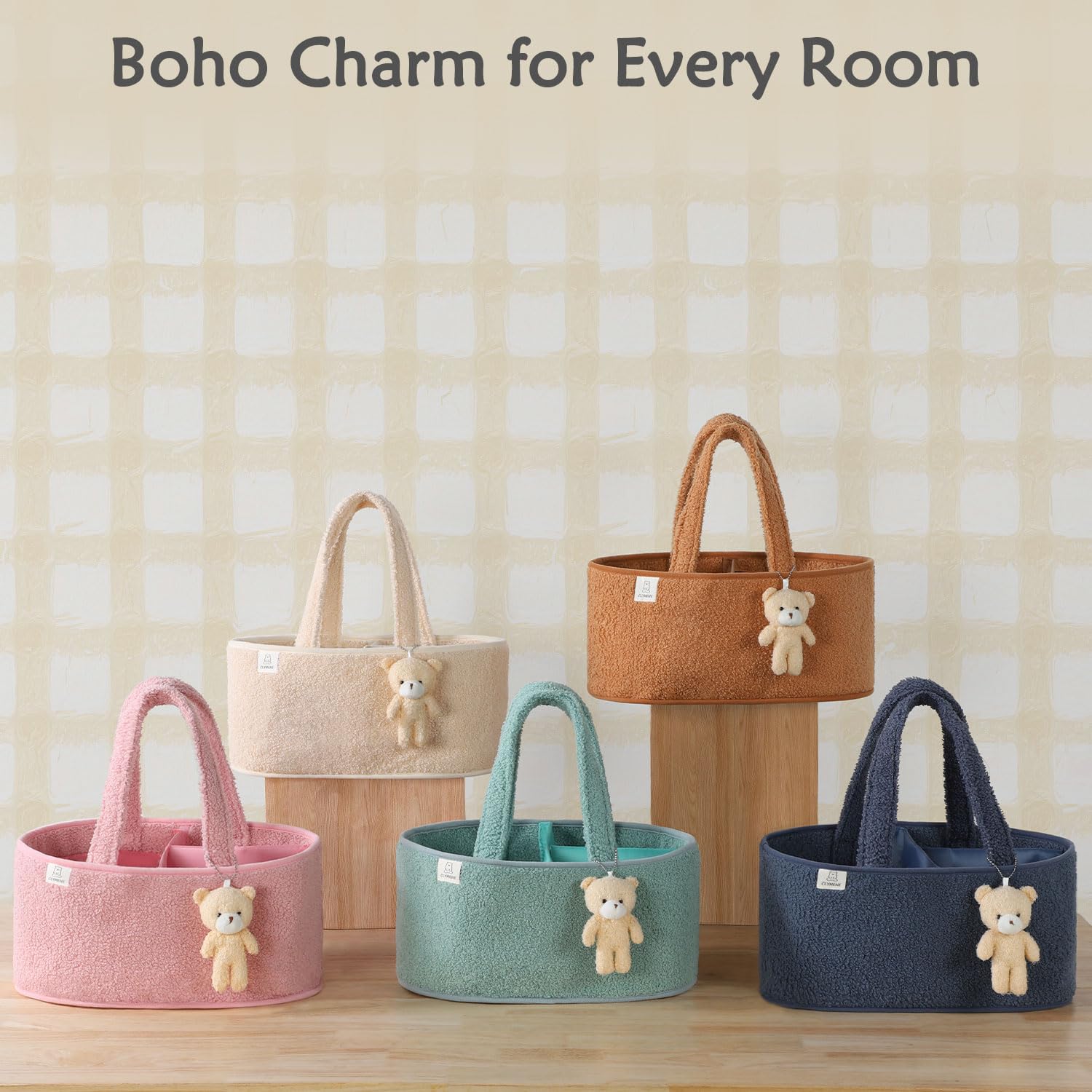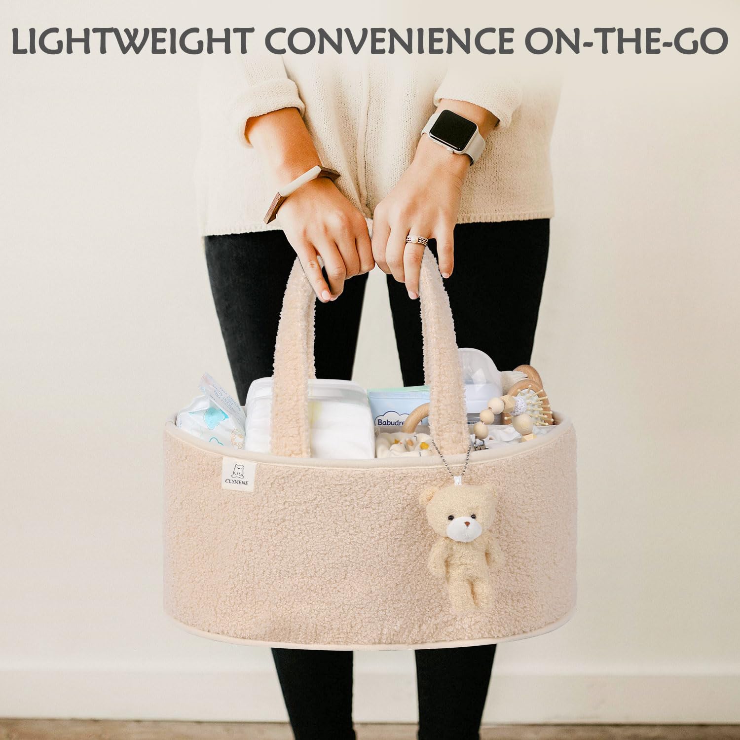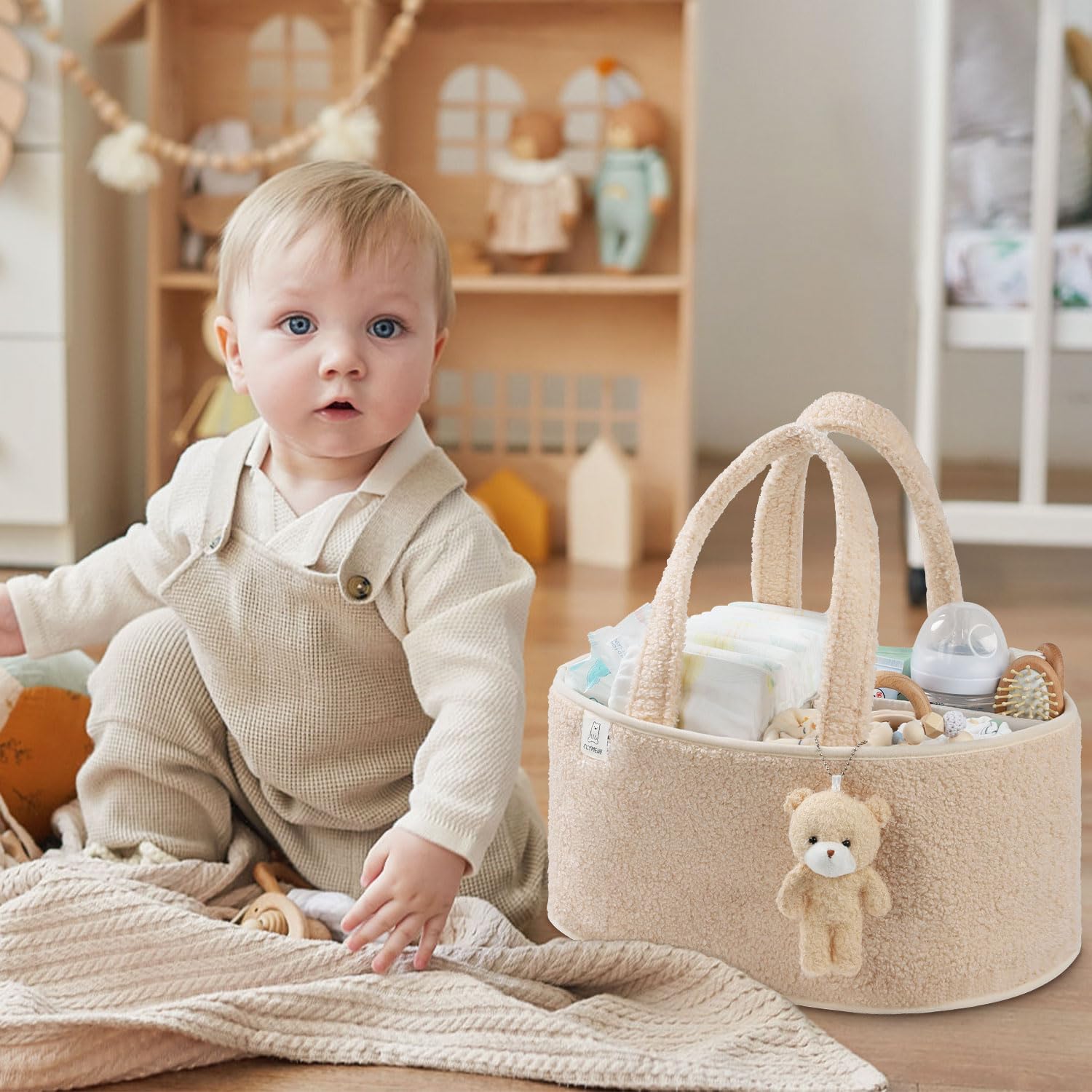 • 【STYLISH & DURABLE DESIGN】Crafted with a premium plush sherpa exterior that feels as cozy as it looks, our baby diaper caddy organizer is available in a variety of trendy colors and features an adorable teddy bear charm, making it seamlessly compatible with any baby nursery décor.