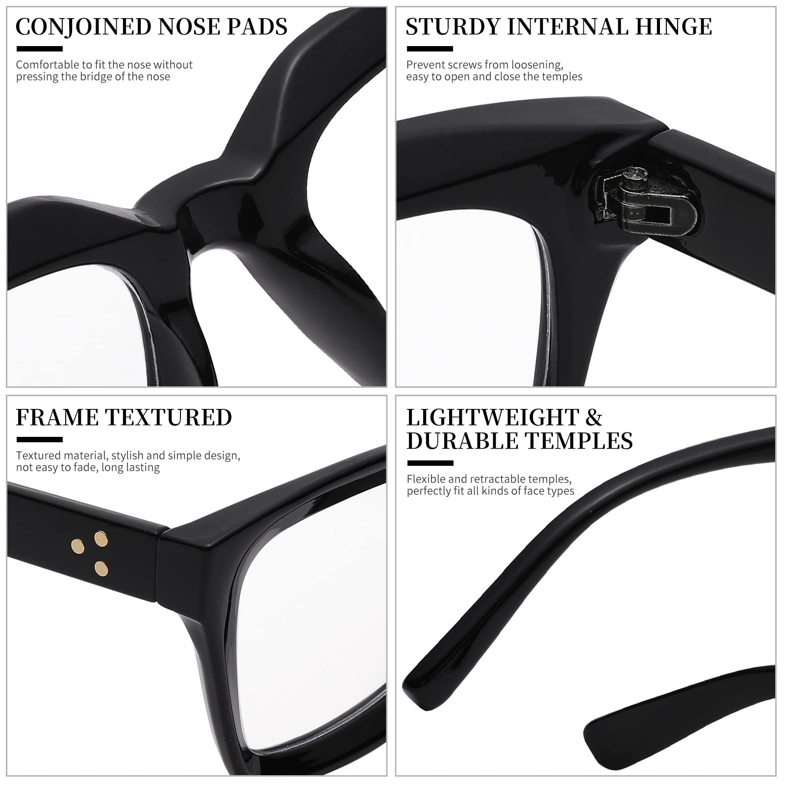 • Comfortable Wearing: The glasses frame comes with clear lenses and made of reinforced TR material frames that won't hurt your eyes. Reinforced metal hinges, anti scratch lens, durable and easy to clean. You can also replace them with your lenses.