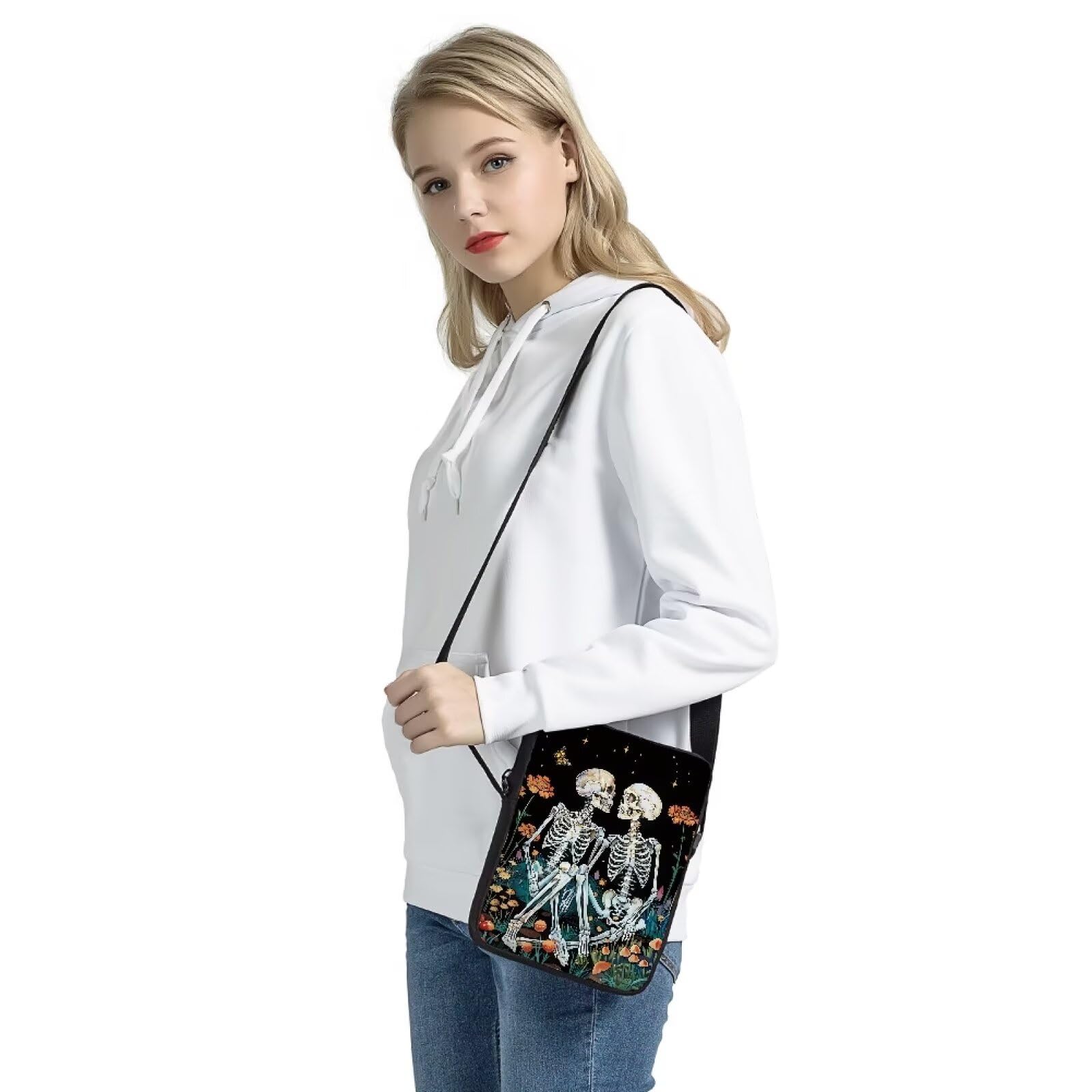 COEQINE Halloween Purse Skull Crossbody Bags Goth for Women Men Goth Teen Purse Novelty Travel Skull Couple Pattern Mini Messenger Bag for Teens Party