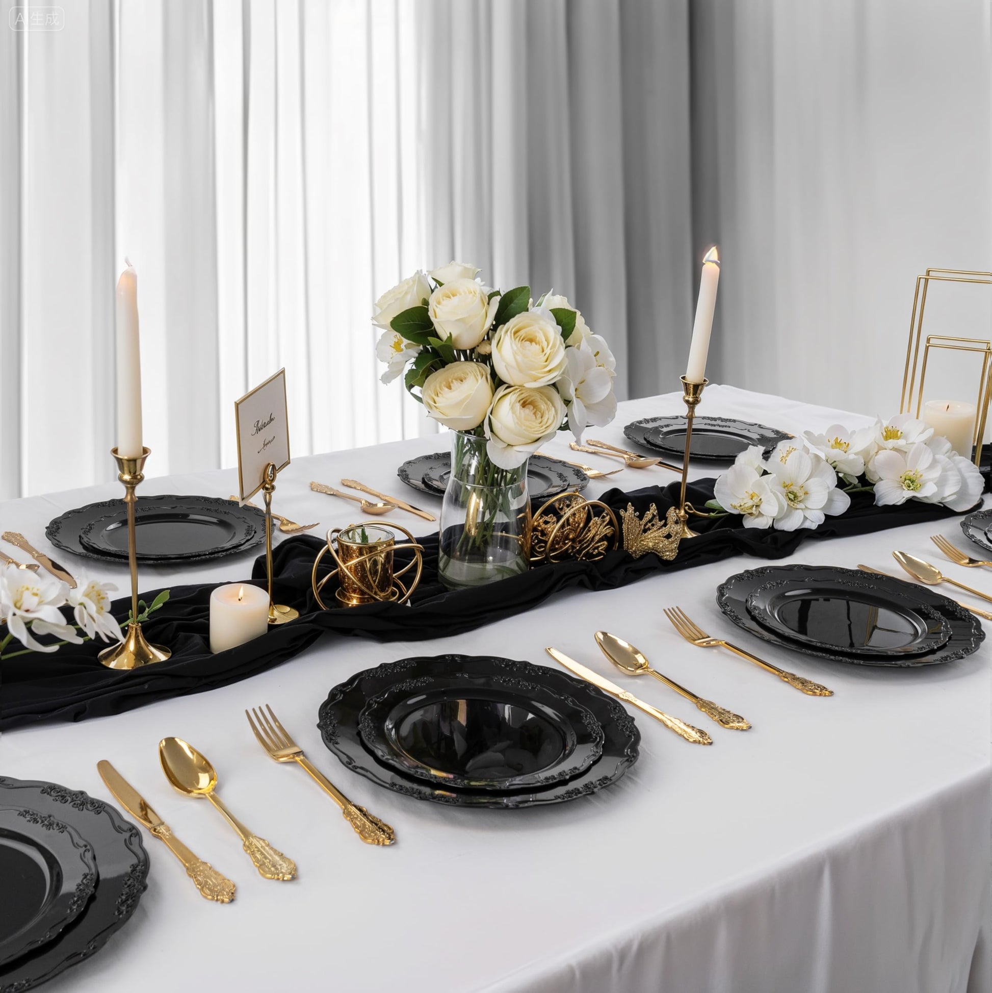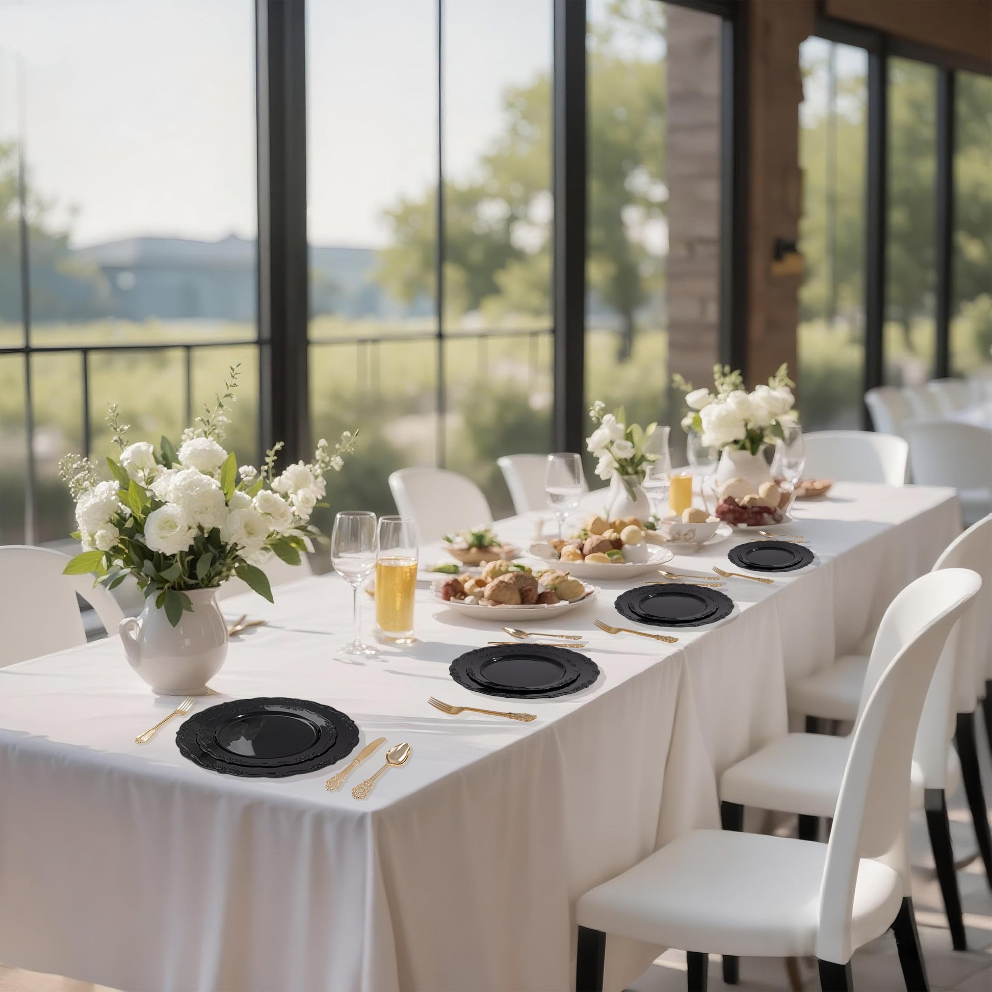 • WIDELY OCCASIONS: Our black disposable plates for wedding are designer sleek, modern and stylish. They are perfect black plastic appetizer plates for birthday, baby shower, wedding, formal dinners, banquets, parties, picnics, catering supplies or holiday, just about anywhere!