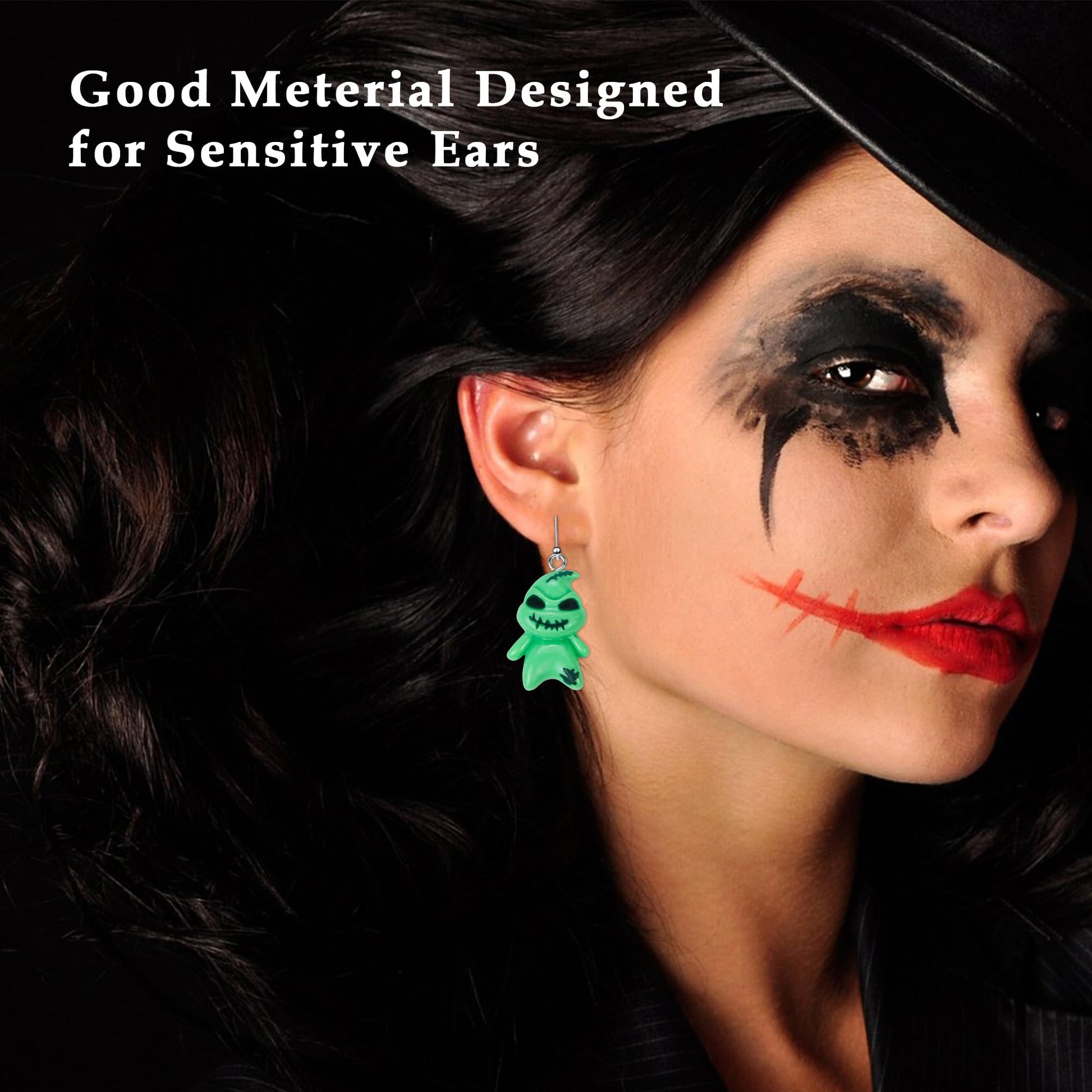 DAYANEY Halloween Earrings for Women Ghostface Earings as Nightmare Movie Before Chrsitmas Gifts, Green Ghost Earrings for Girls Cute Boogcy Costume Halloween Accessories Christmas Jewelry