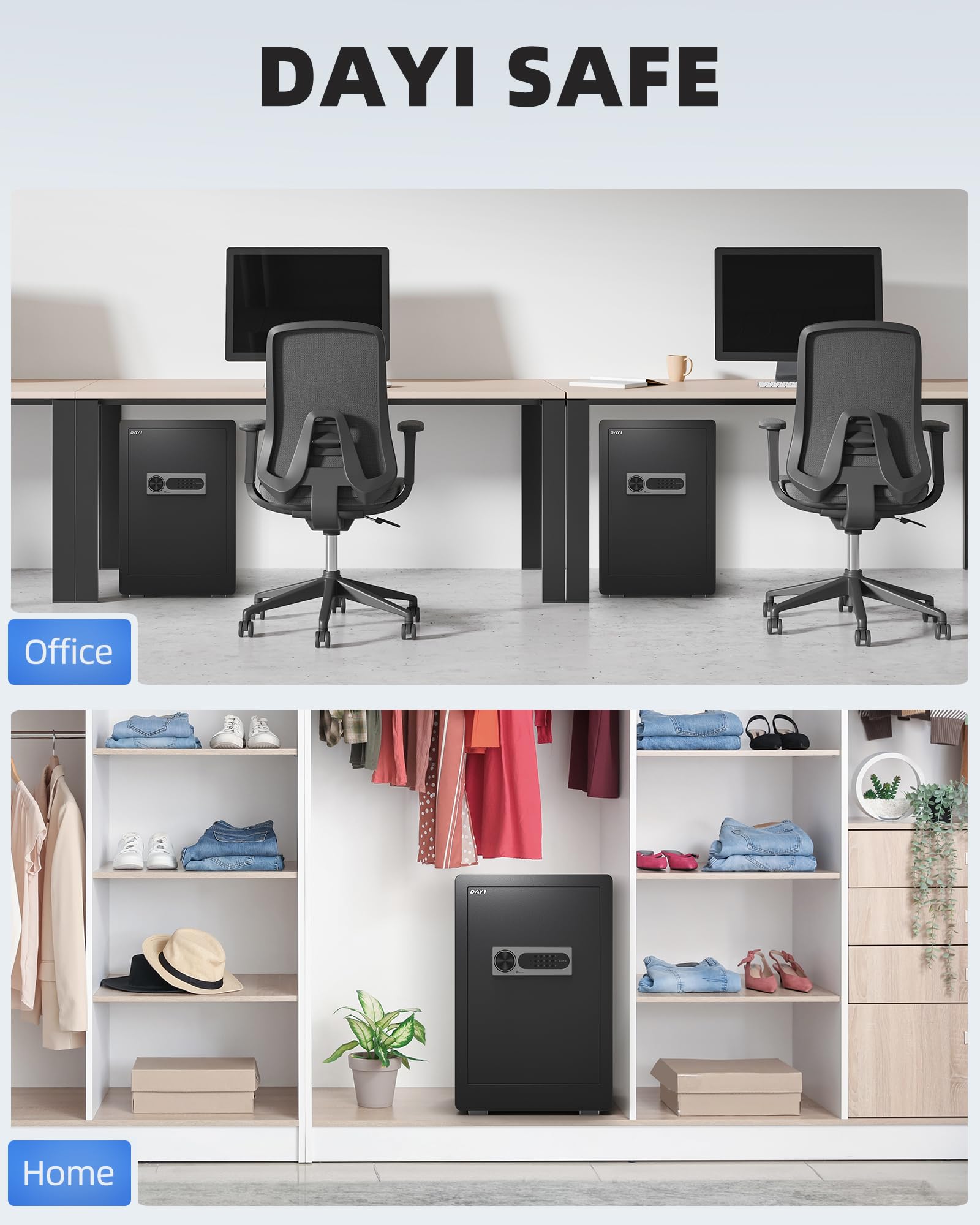 DAYI Safe Box, 3.0 Cubic Feet Home Safes with Fireproof Waterproof Bag, Security Safe for Money Cash Documents, Digital Keypad, Dual Alarm System, Removable Shelf - D-60