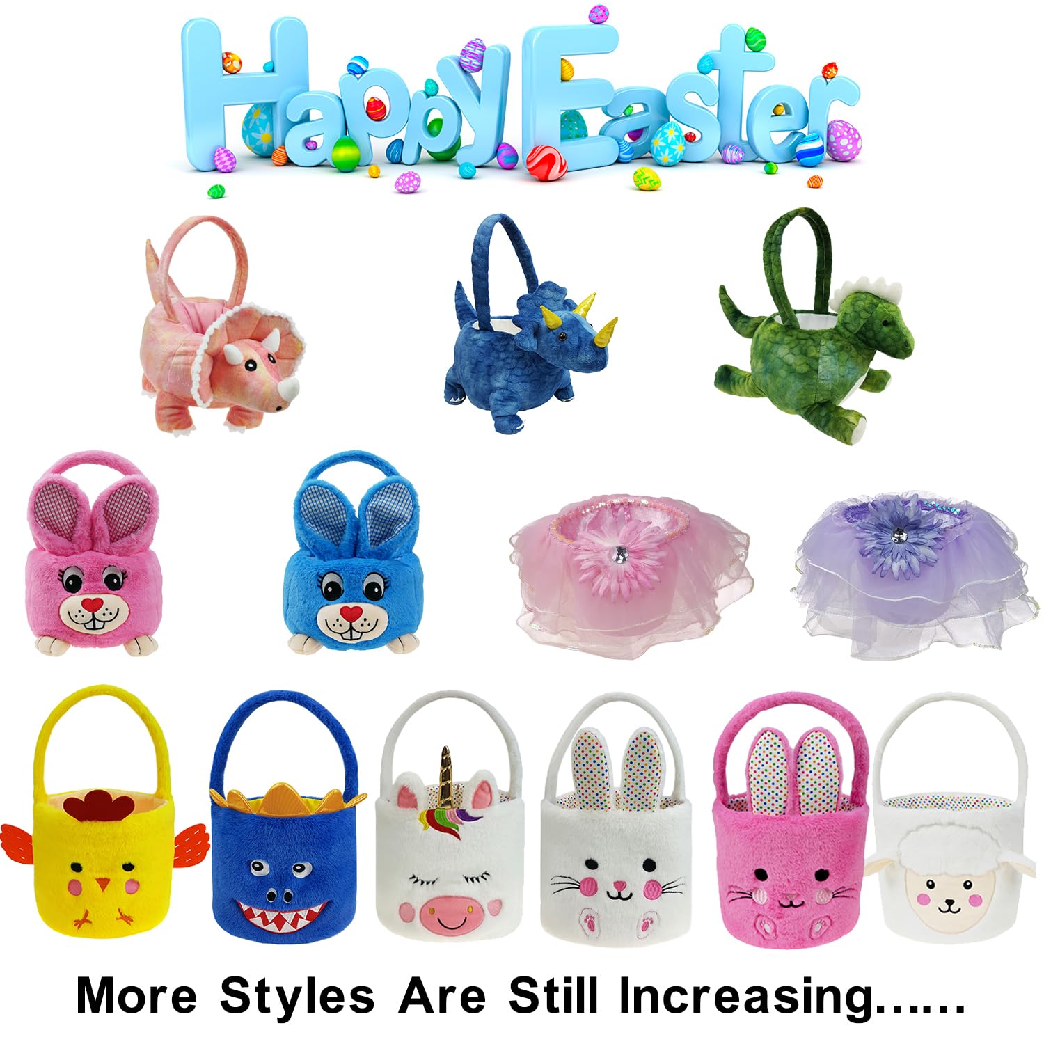 DearSun 3D Triceratops Plush Basket Halloween Trick or Treat Baskets, Cute Candy Bucket for Kids Gift Party Decoration, Pink