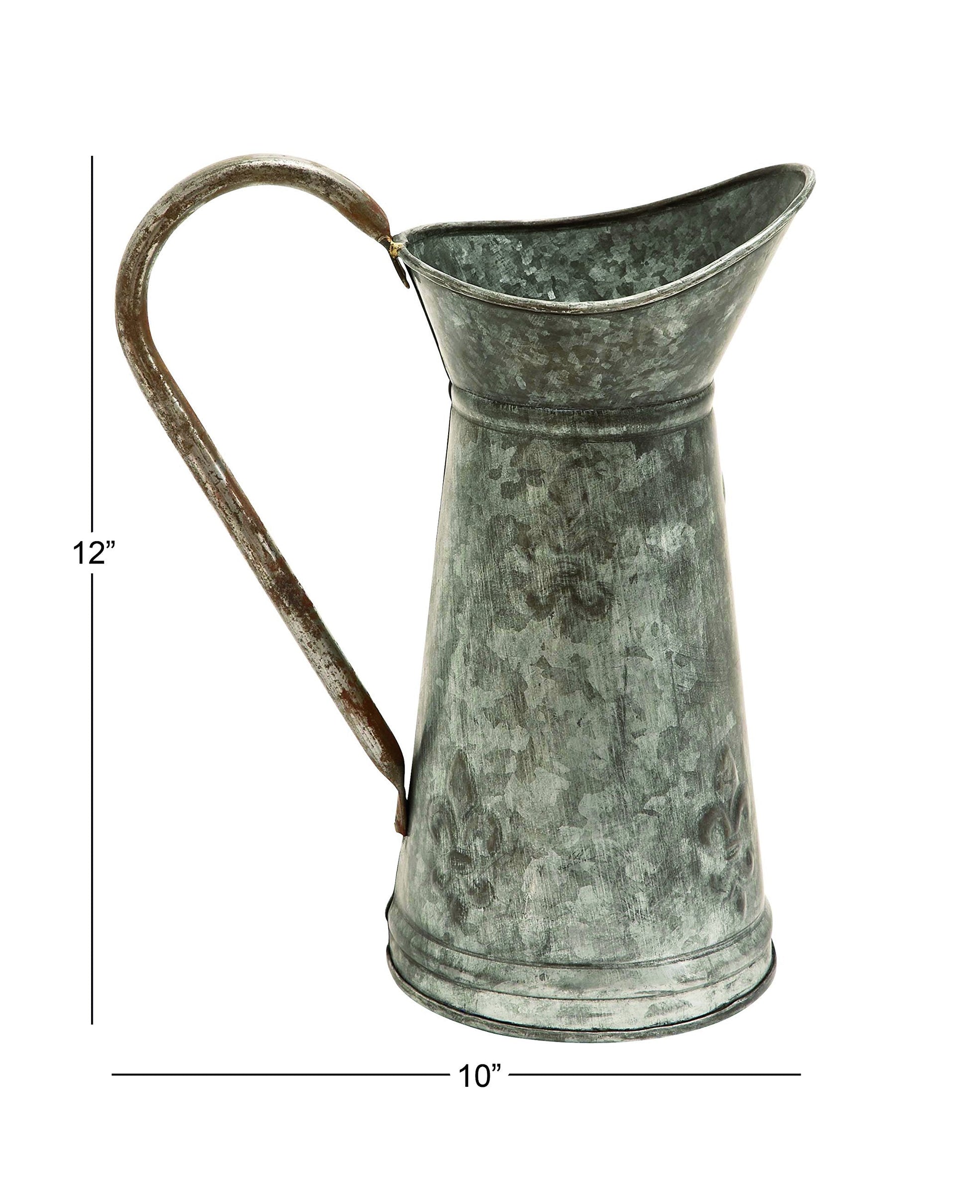 Details: A perfect addition to your gardening set, this metal galvanized watering jug is crafted to perfection. This tall watering jug is carefully designed from high quality metal to ensure lasting functionality with minimum care. Galvanized finish on the metal watering jug imparts reliable usage as it is resistant to easy wear, corrosion and other weather induced damage. Flaunting a distressed finish and embossed fleur-de-lis motifs, this watering jug is high on style and visual appeal and is sure to charm a variety of outdoor settings. Styled with a slender, wide handle, this watering jug is reminiscent of rustic elegance and classic designs that is sure to lend a captivating charm. This wonderful gift will be appreciated by your near and dear ones