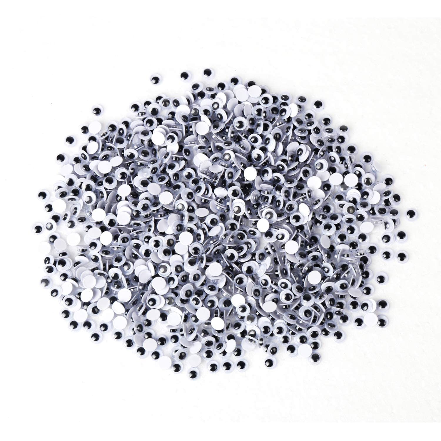 • Package includes: Total 1000pcs black googly wiggle eyes, including 260 pcs 6mm wiggle eyes, 200 pcs 7mm wiggle eyes, 150 pcs 8mm wiggle eyes, 240 pcs 10mm wiggle eyes, 150 pcs 12mm wiggle eyes.