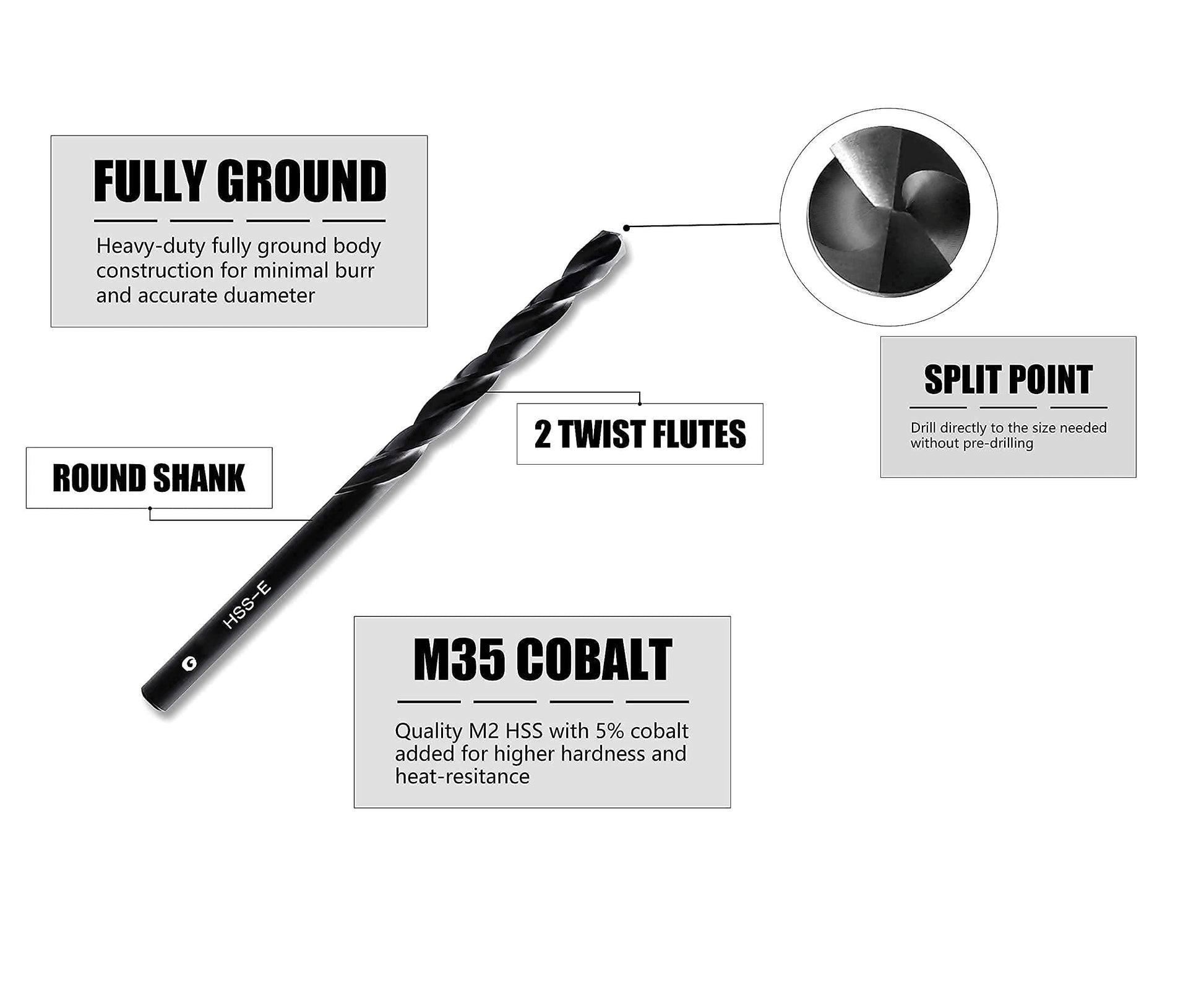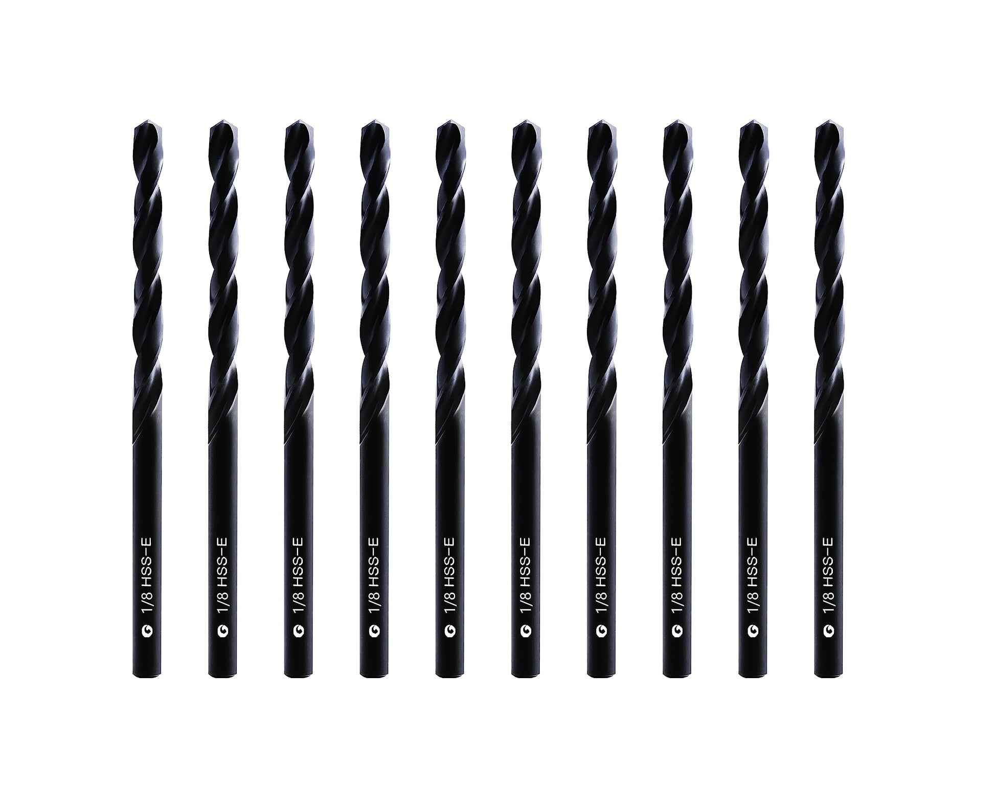 DelitonGude 1/8''inch HSS M35 Cobalt Twist Drill Bits,High Speed Steel,Pack of 10,Suitable for Steels,Cast Iron,Stainless Steels and Other Hard Metals(1/8inch)