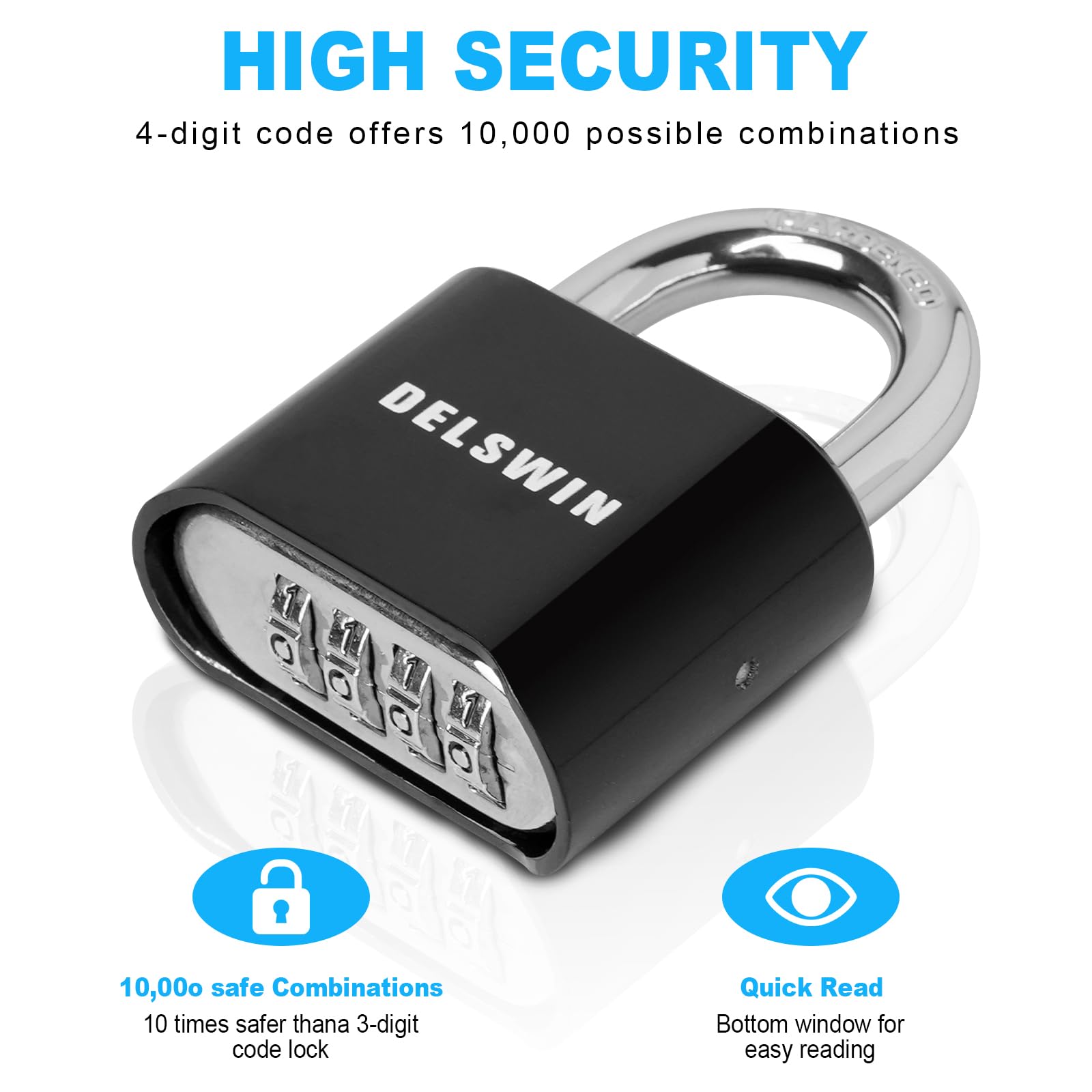 Details: DELSWIN combination padlock has excellent anti-tampering performance and superior cut resistance to protect your locker or your home against thieves. FEATURES: