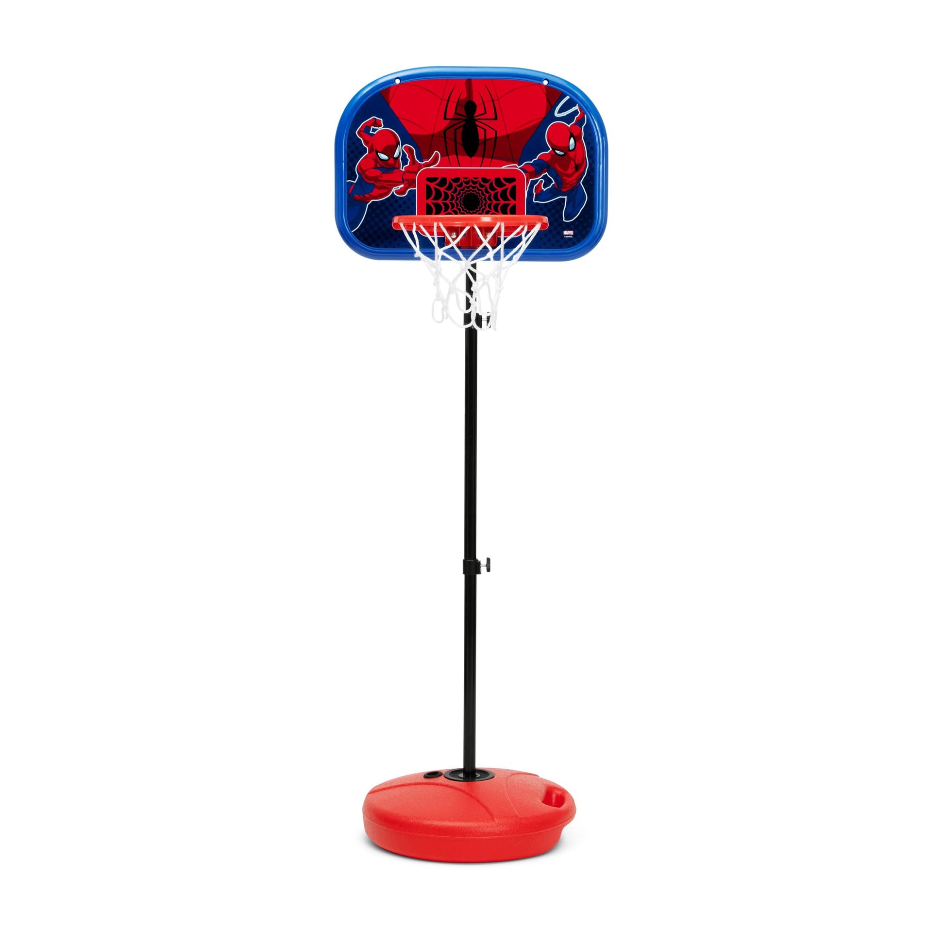 Details: Score big points with the basketball fan in your life with this Spider-Man Basketball Hoop Set by Delta Children! The backboard features everyone’s favorite superhero, Spider-Man. It will help kids develop social, motor skills and coordination—they will work on their gross motor skills as they run and shoot the basketball and practice fine motor skills and hand-eye coordination as they try to control the basketball. The height can be adjusted to multiple settings between 4.2 and 5.25 feet to accommodate all ages and skill levels. Use inside or outside. Before play, add sand or water to the base for stability. Includes basketball and hand air pump.