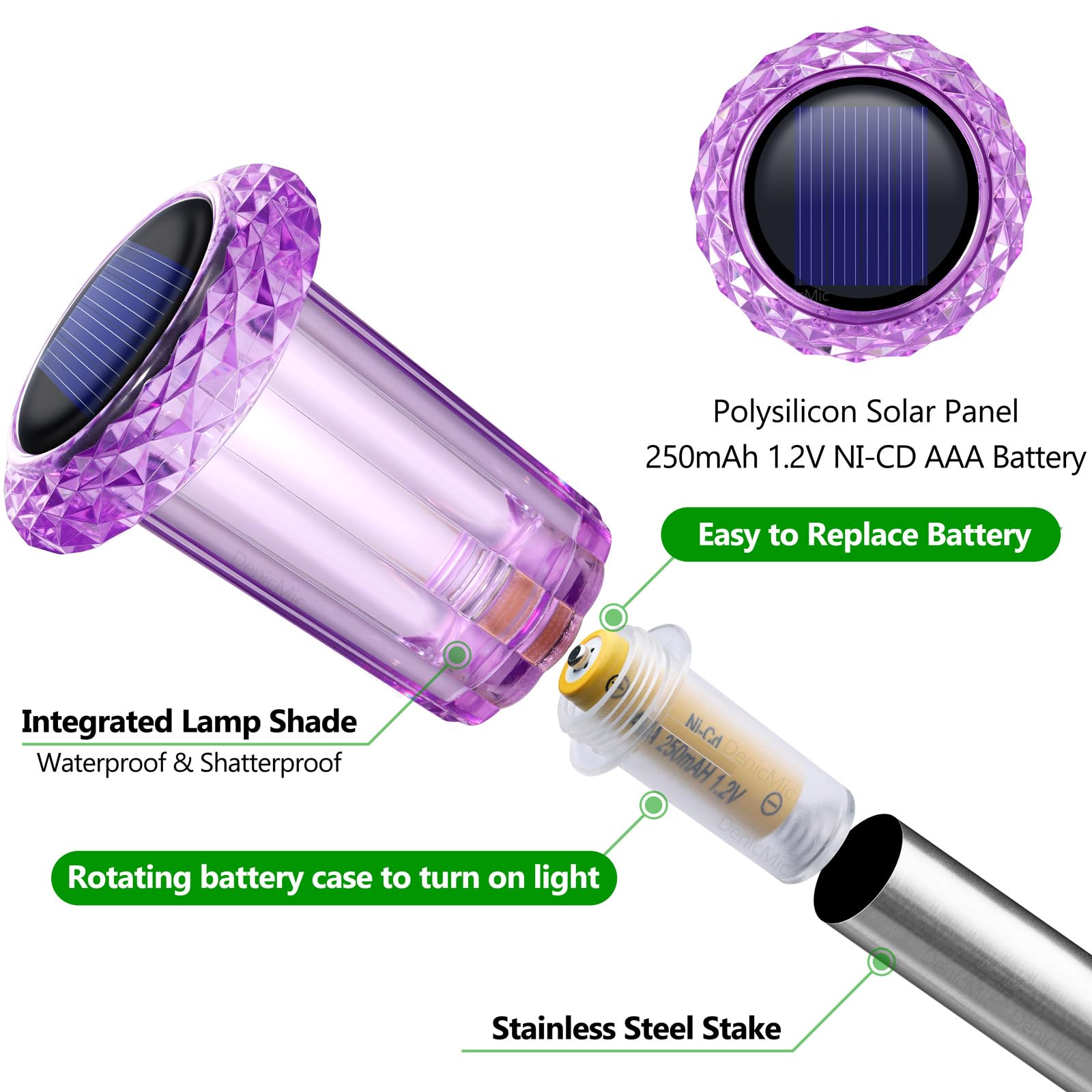 • OUTDOOR DURABILITY: The integrated acrylic lamp head is tightly connected to the battery base and equipped with stainless steel stakes, there are no external metal parts. It is waterproof, dustproof and rust proof. Therefore, solar lights for outside can be used in rain, snow or high temperatures.