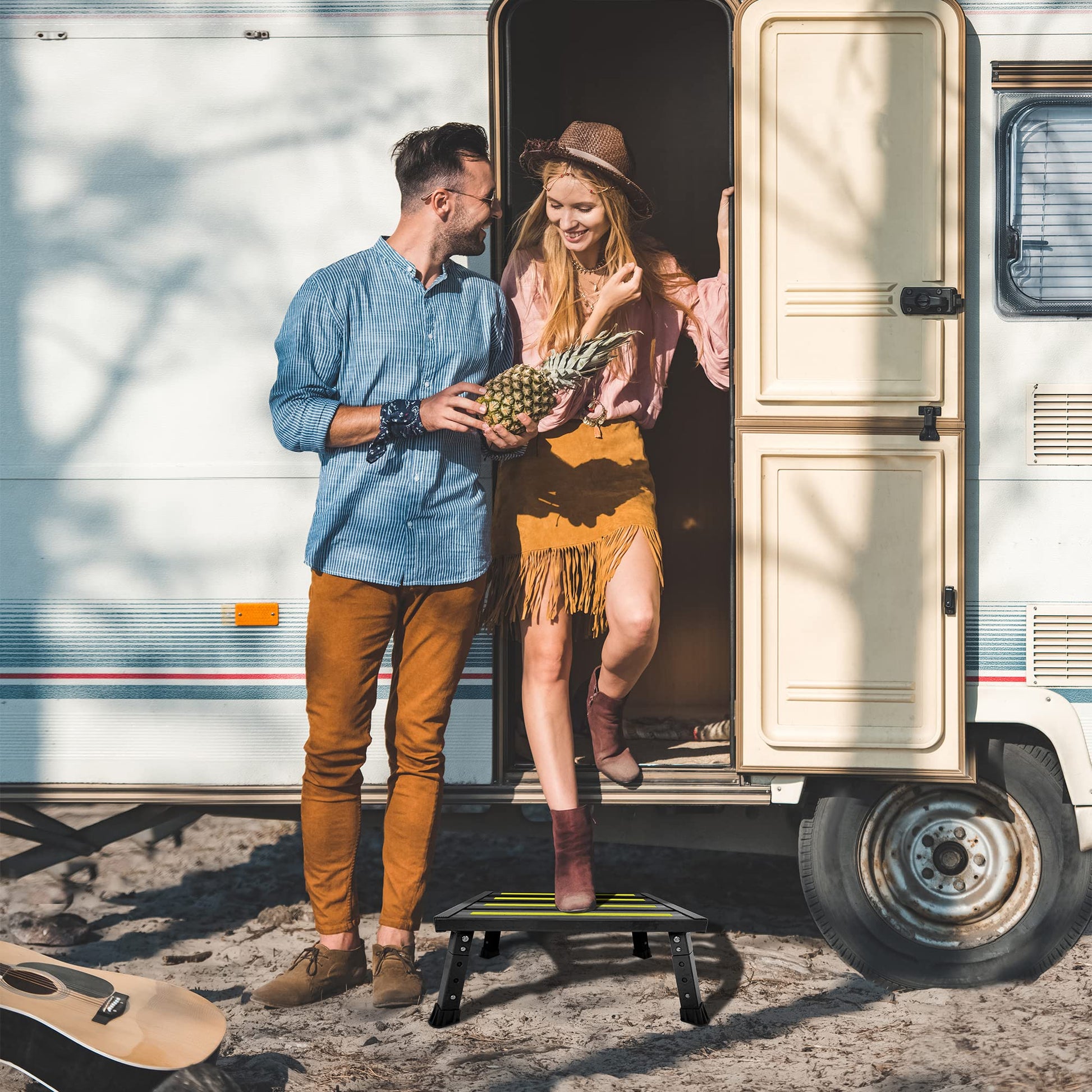 • EASY IN & OUT RV: Folding adjustable step stool with full metal construction. The right step for children, elderly people to get in and out your RV, motorhome, trailers, truck, SUV . Very stable and easy to carry