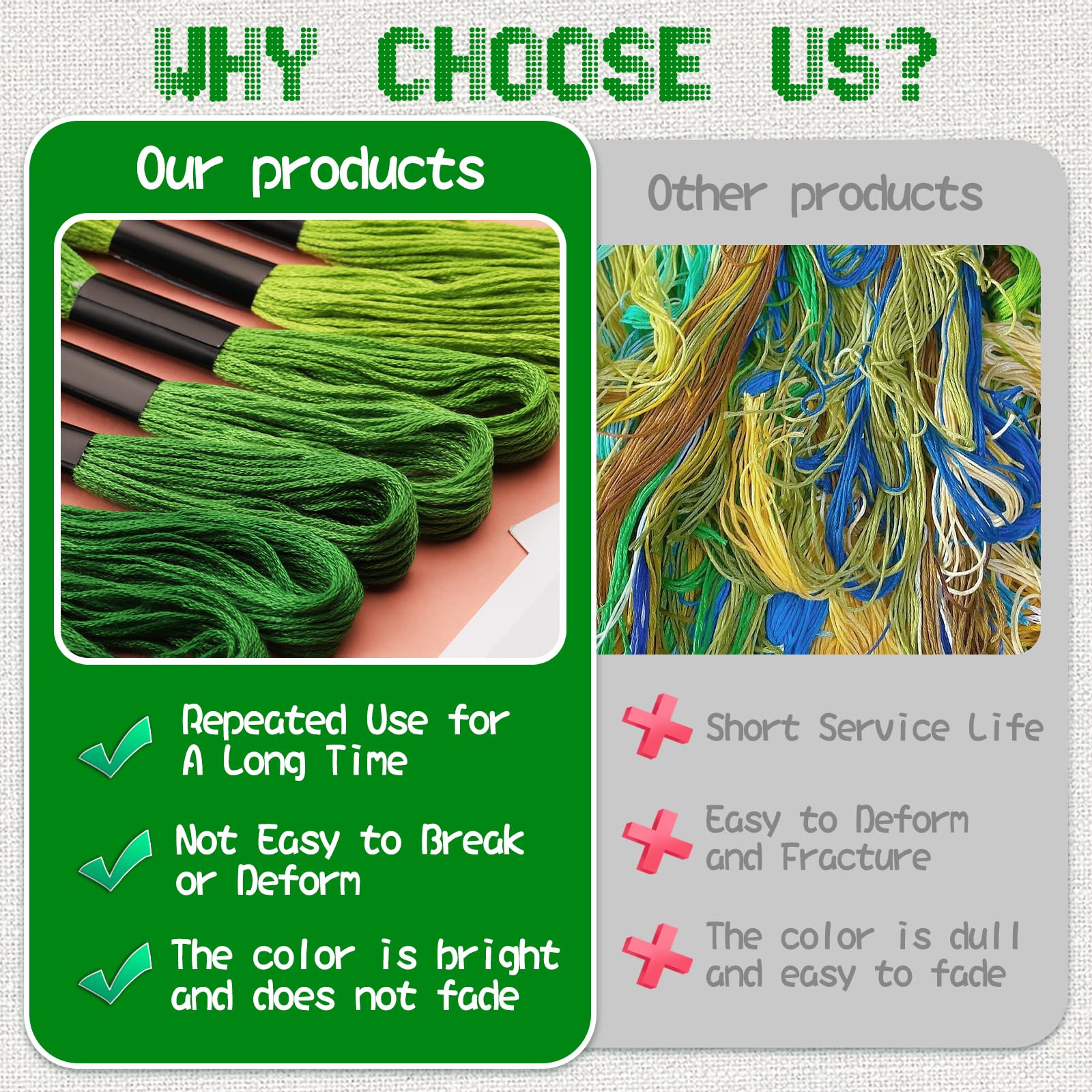 • Package Included: You will get 25 skeins green series cross floss stitch thread,1plastic floss bobbins