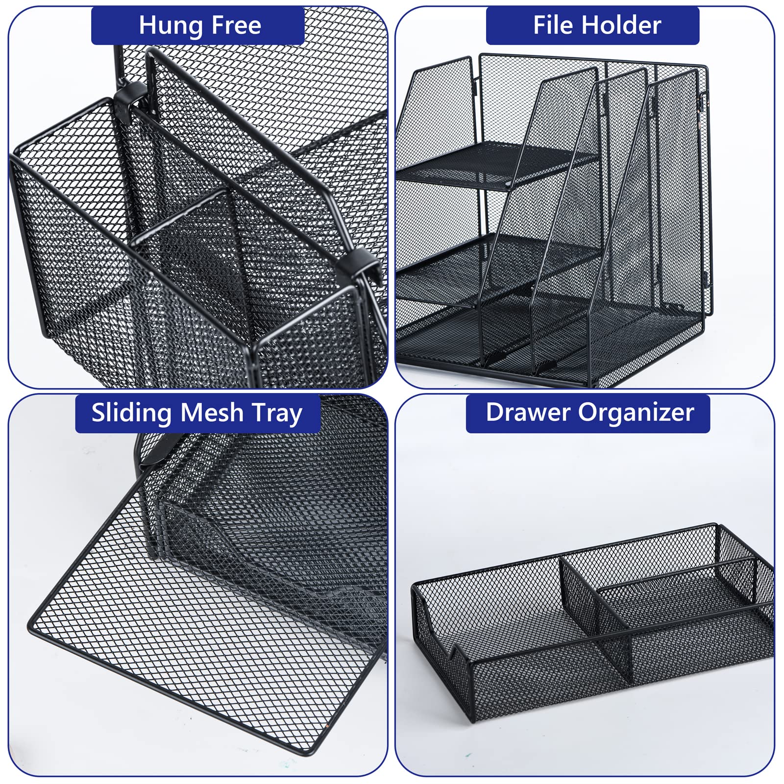 • 【Space Saving】: The paper tray organizer is very suitable for storing books, magazines, letters, and paper; The drawer organizer and hanging pen holder accommodate all office supply accessories; Helps you stay away from cluttered desks and stay organized.