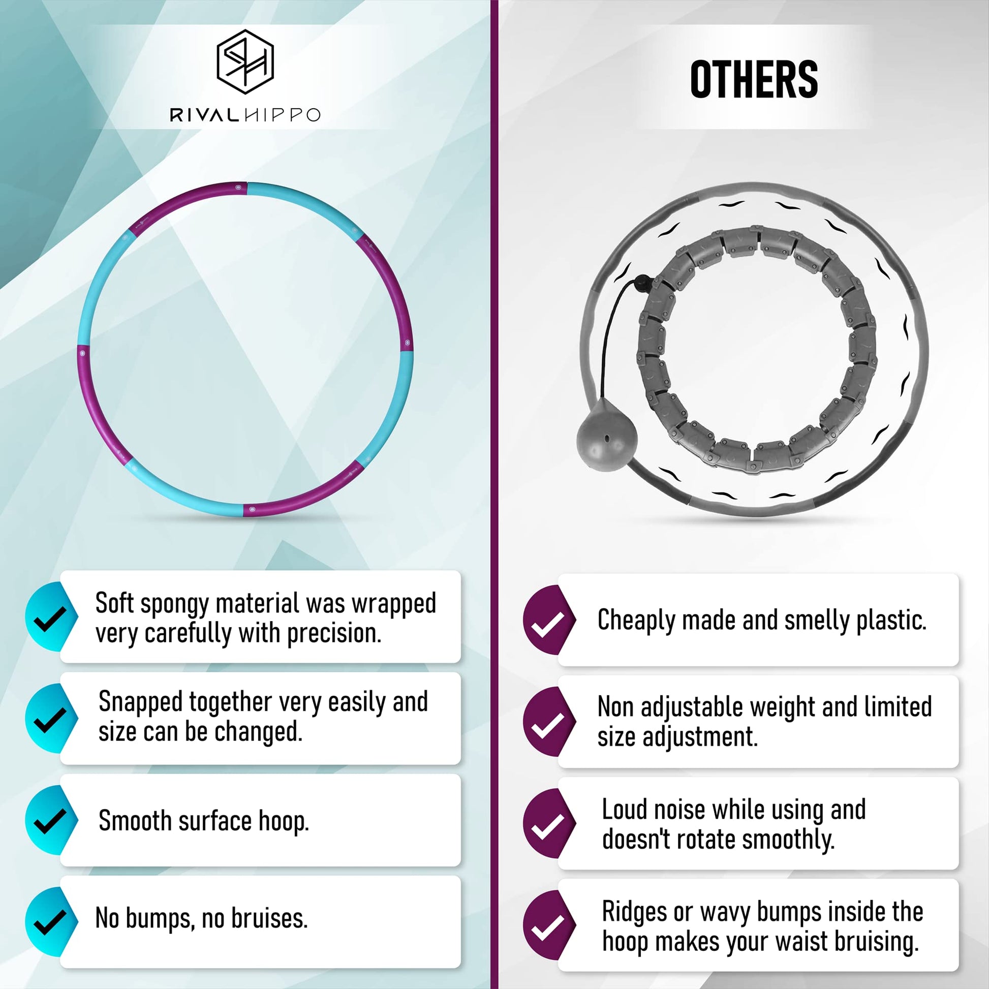 • NO MORE BRUISES - RivalHippo designed weighted hula hoops for women with Smooth foam padding provides the perfect cushion to prevent your body against bruises.
