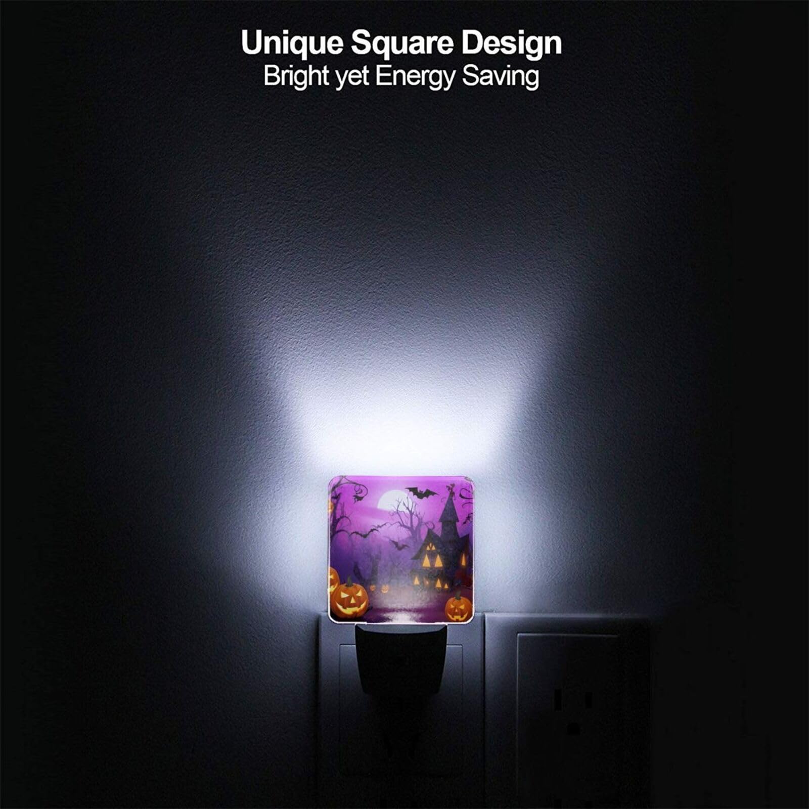 Dewoofly Halloween Pumpkin Night Light Set of 2, Lanterns and Ghost Owl Bat Auto Sensor LED Dusk-to-Dawn Nightlights, Plug-in Sensor Lamp for Bedroom Bathroom Kitchen Hallway Stairs Decorative