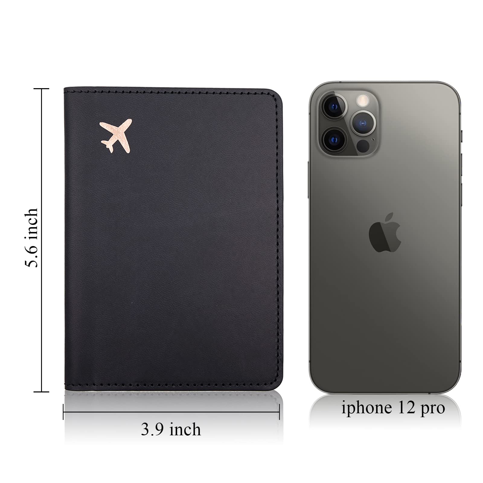 Deziliao Passport Holder,Passport Holder Card Slots, Passport and Vaccine Card Holder Combo, Cute Passport cover for Women and Men, with Waterproof Rfid Blocking, Passport Travel Wallet(Black)