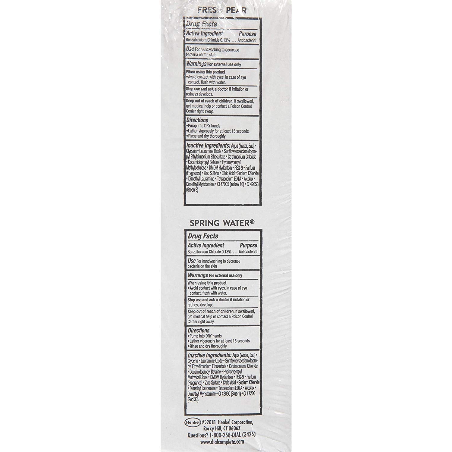 • Multi pack includes our most popular Dial Complete foaming hand soap scents: Spring Water (three x 7.5 fluid ounce pump bottles) & Fresh Pear (two x 7.5 fluid ounce pump bottles) for a total of FIVE x 7.5 fluid ounces of your favorite scents!