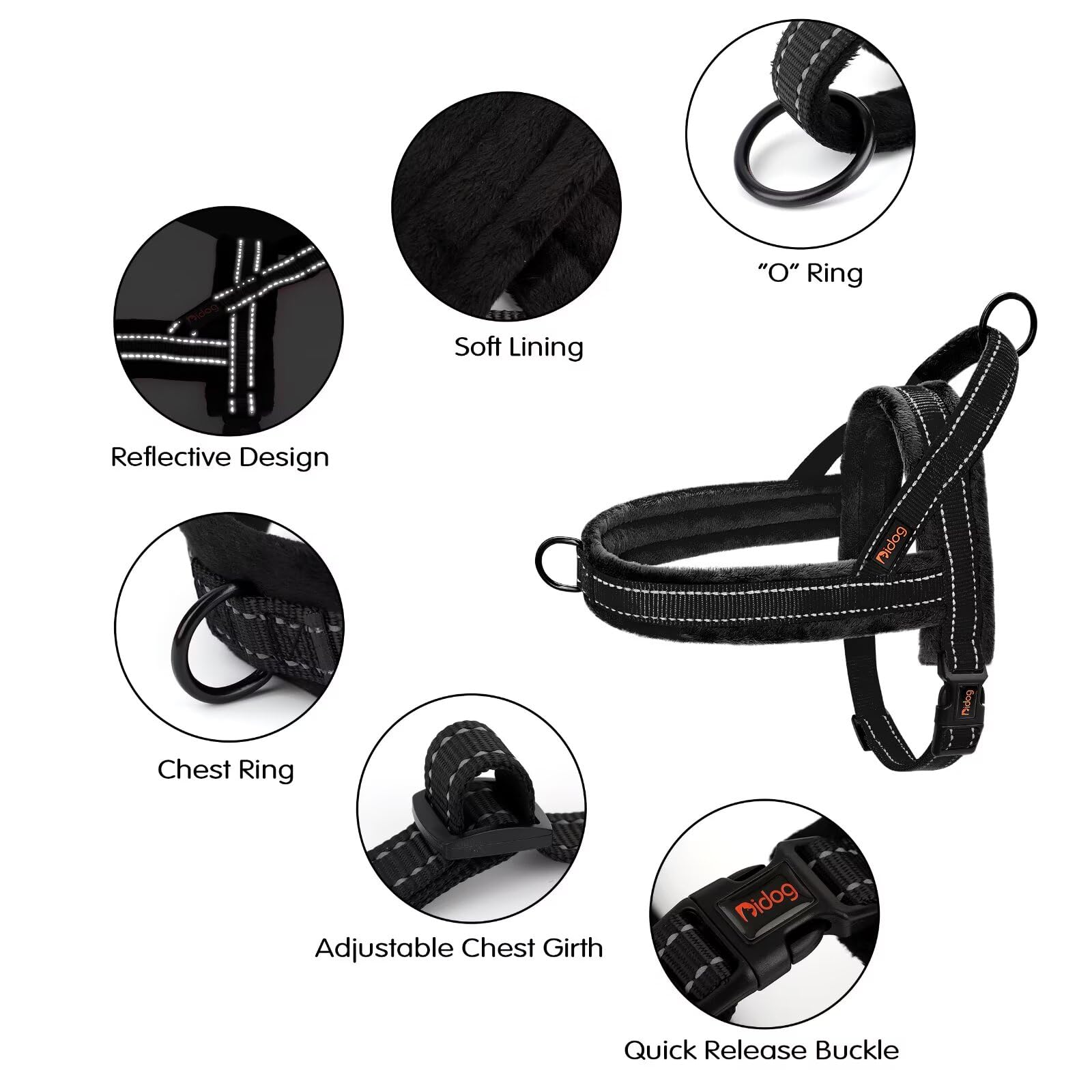 • Comfortable Wearing & Safety Walking - There are soft fleece pads beneath the straps for dog neck and back, pads are wider than straps to make sure dog comfortable feel for each pulling; 2 reflective lines along each strap is helpful to keep your dog safe for night walking